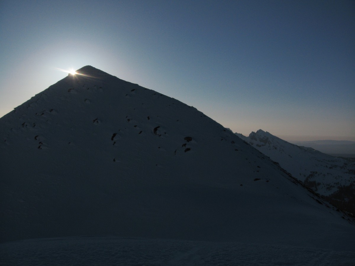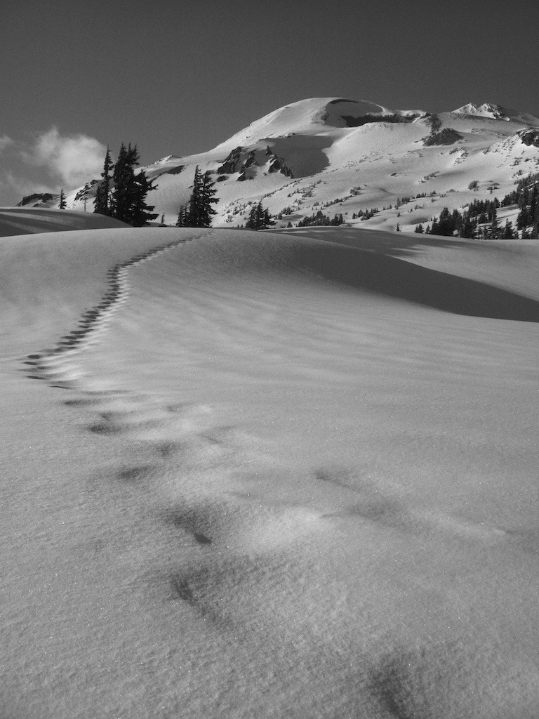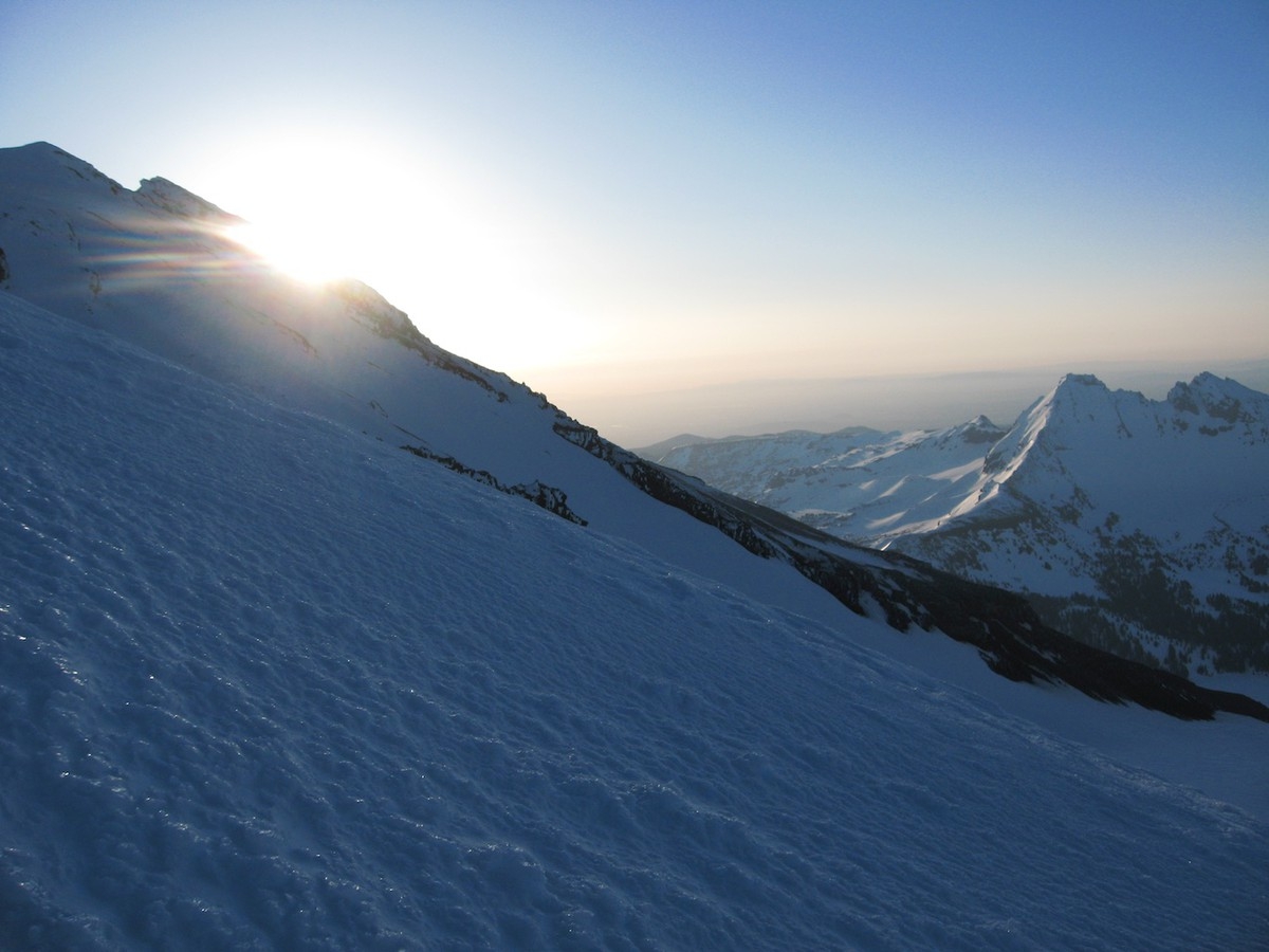 I went down to Bend to ski into and climb South Sister. I had thoughts of camping on the summit but camping at the base and going up lighter sounded more appealing. The road from Mt. Bachelor wasn’t open yet so I brought my old cross country skis and tried remembering how to ski again.