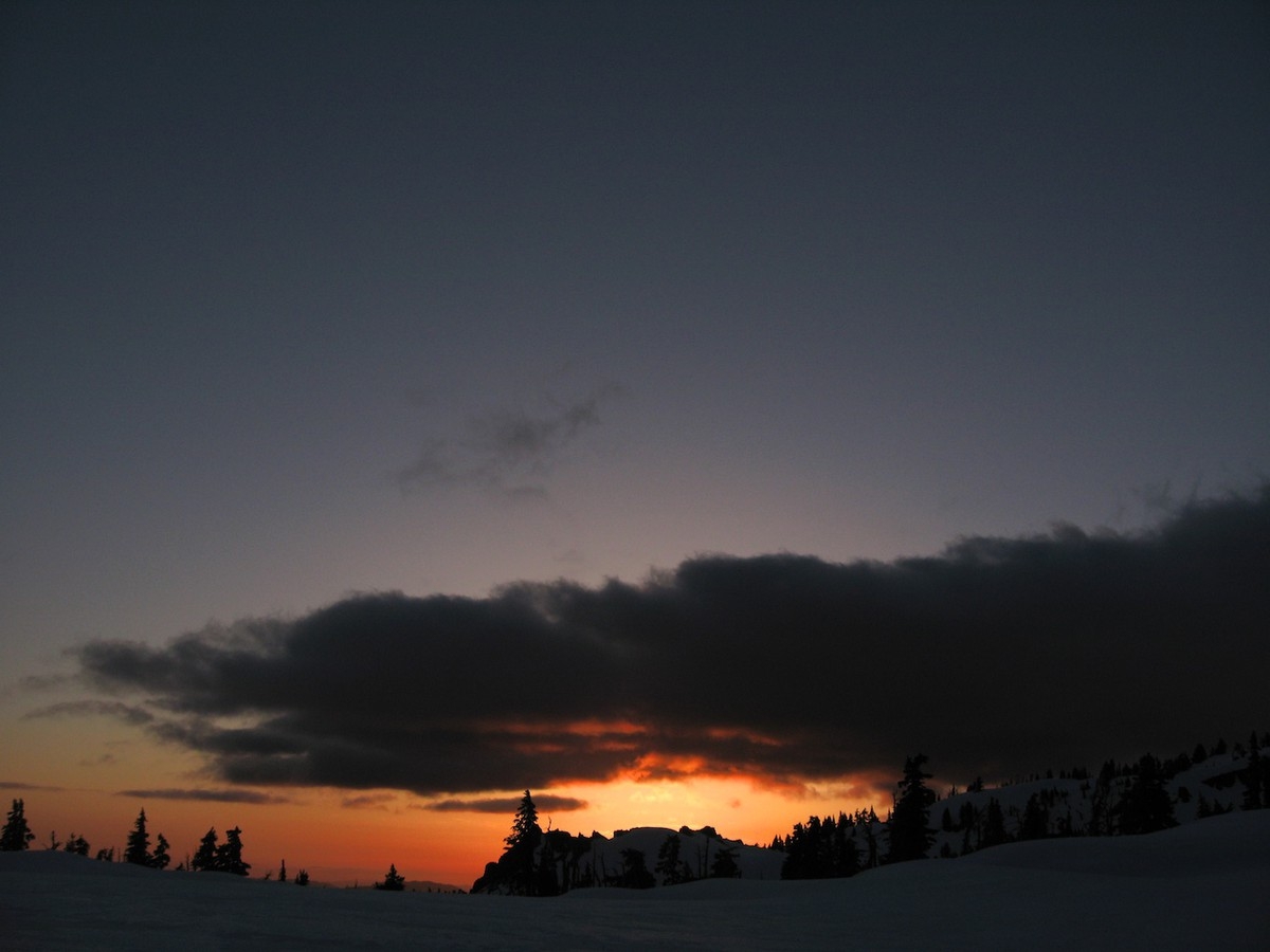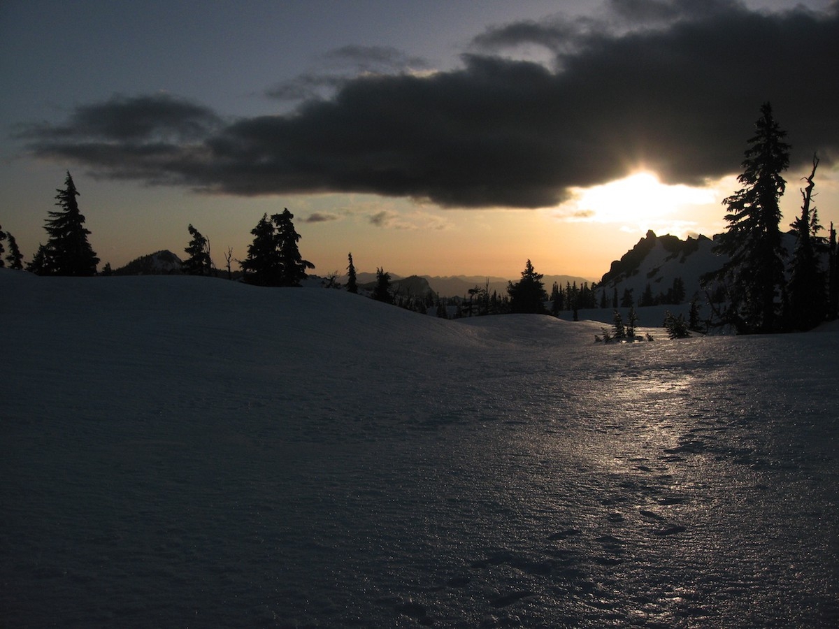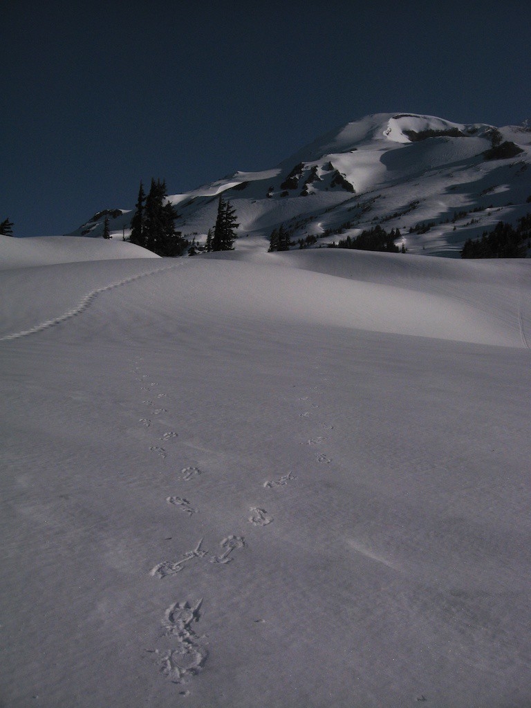 The way in was half cleared so there was a fair amount of hiking on pavement but the skiing sections went really fast. I see why people skin instead of hike. I definitely need to get some good skis and practice. From the trailhead it was a fairly quick hike up to the flats and over to camp. I got misdirected a few times but made good time.