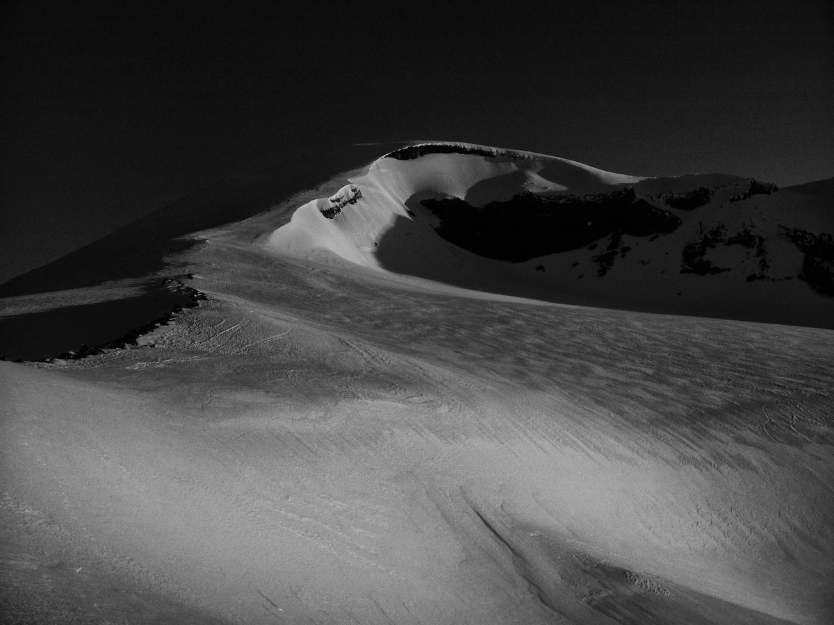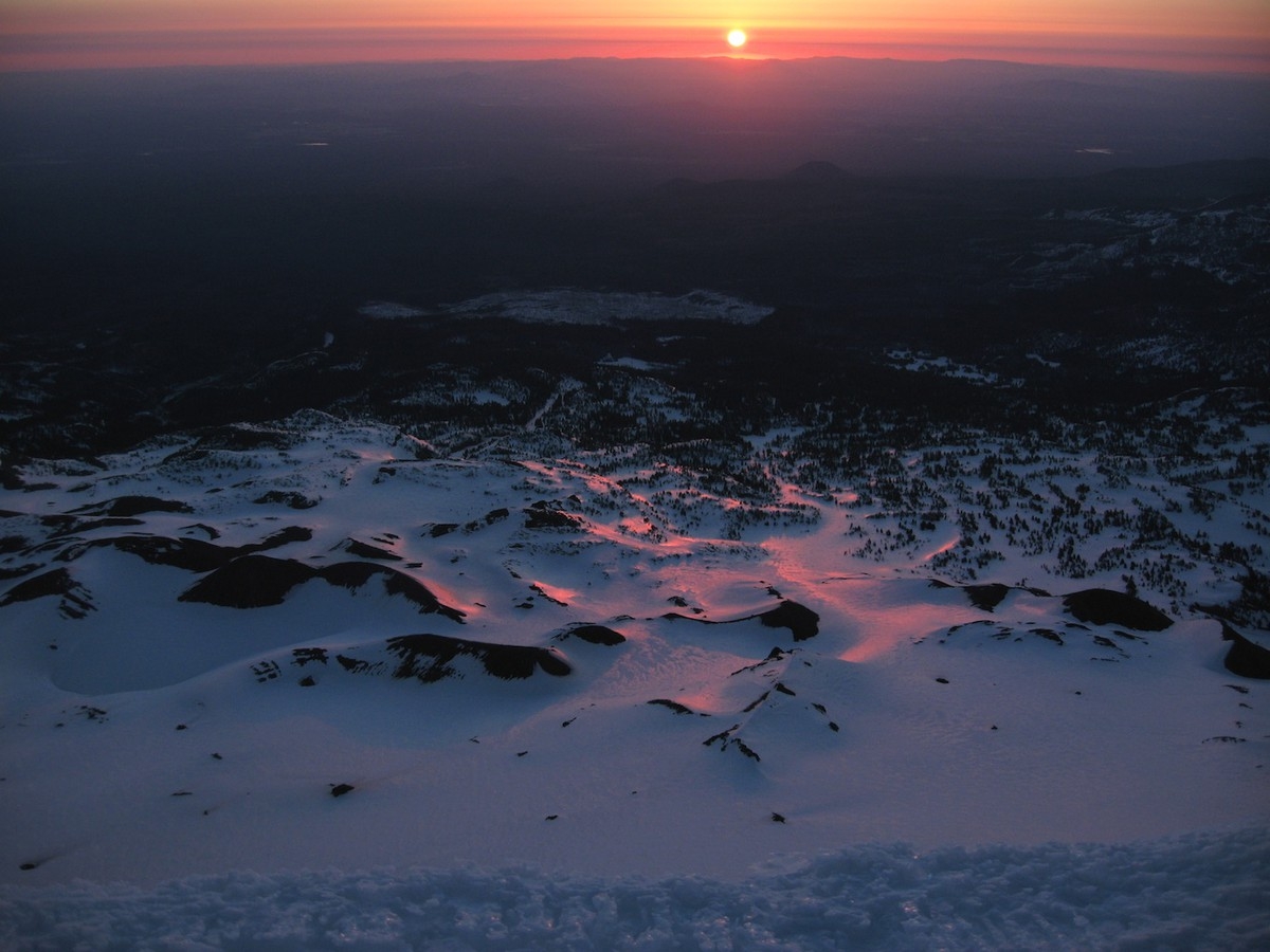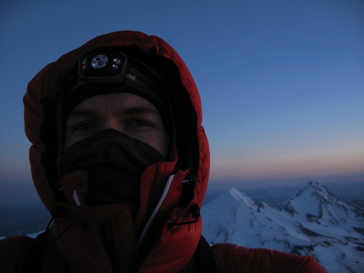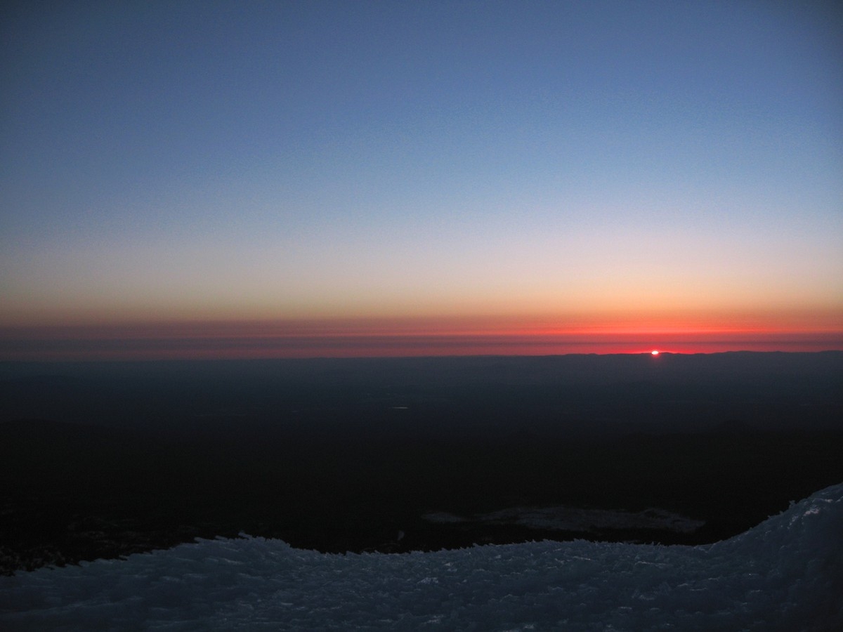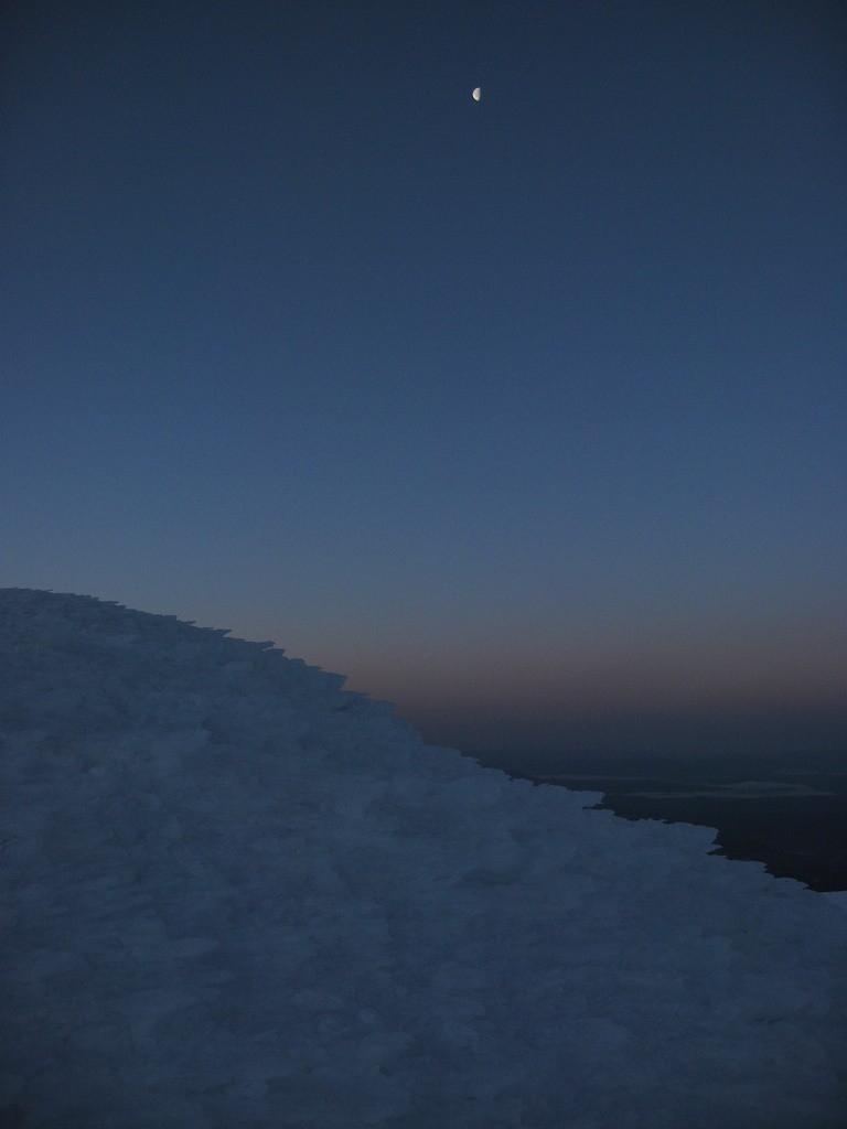 I woke up at 2am so I could get to the top by sunrise. It was uber cold, a little below 20, and all of my breath froze on the inside of the tent. I set up my camera to take some shots of the climb while I was going up to hopefully make a nice timelapse, then headed up at 3am. I got to the rim by 5am and over to the summit proper at 5:15. It was cold enough that my thermometer stopped displaying numbers properly, but the last number was 16. I stomped around waiting for the sun to creep up and once it hit the horizon I went back to camp as I was too cold.