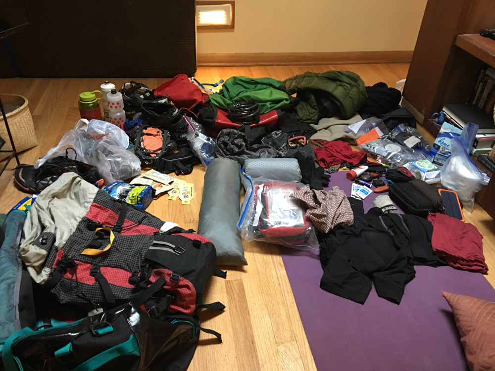Second day was up some gnarly dirt roads to the trailhead where we rested and melted snow for water.