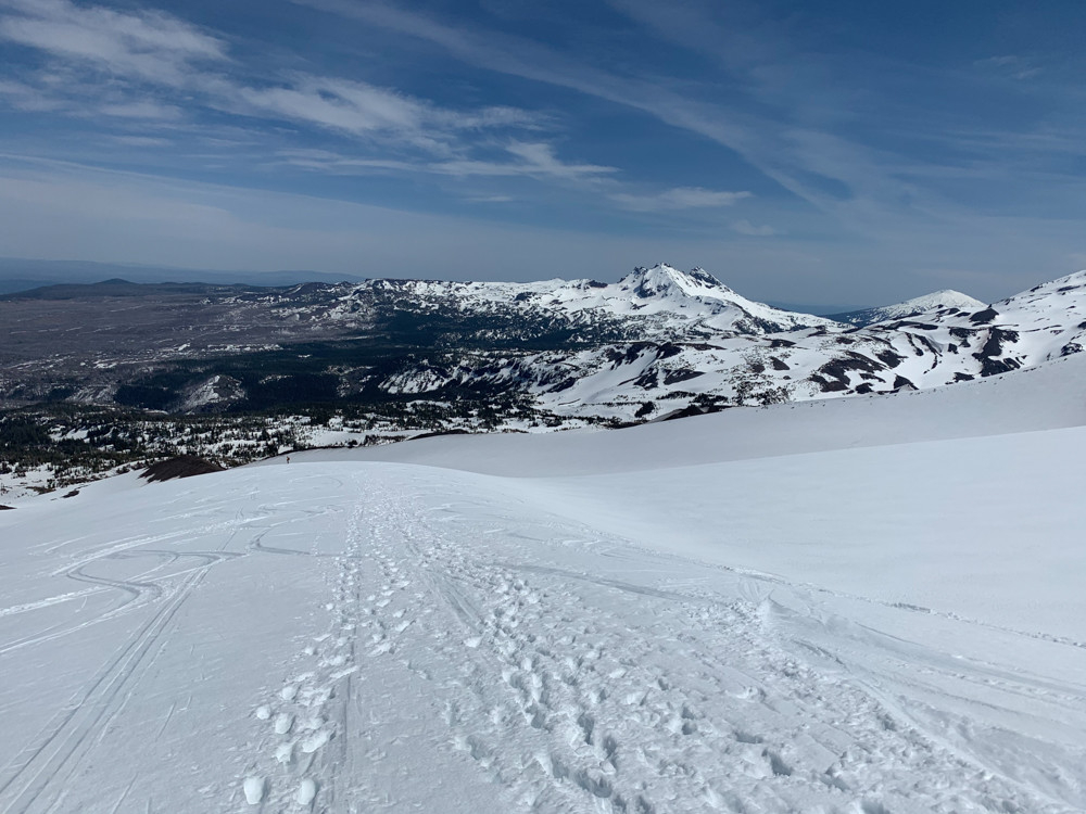 It’s not Mt. Shasta, but Dan and I made a run for Middle Sister over the weekend. There was debate about bringing skis or not; I went with no skis, Dan went with skis. Dan was right. We had warm weather and postholed snow. Views were awesome and we had the whole set of mountains to ourselves as we left.