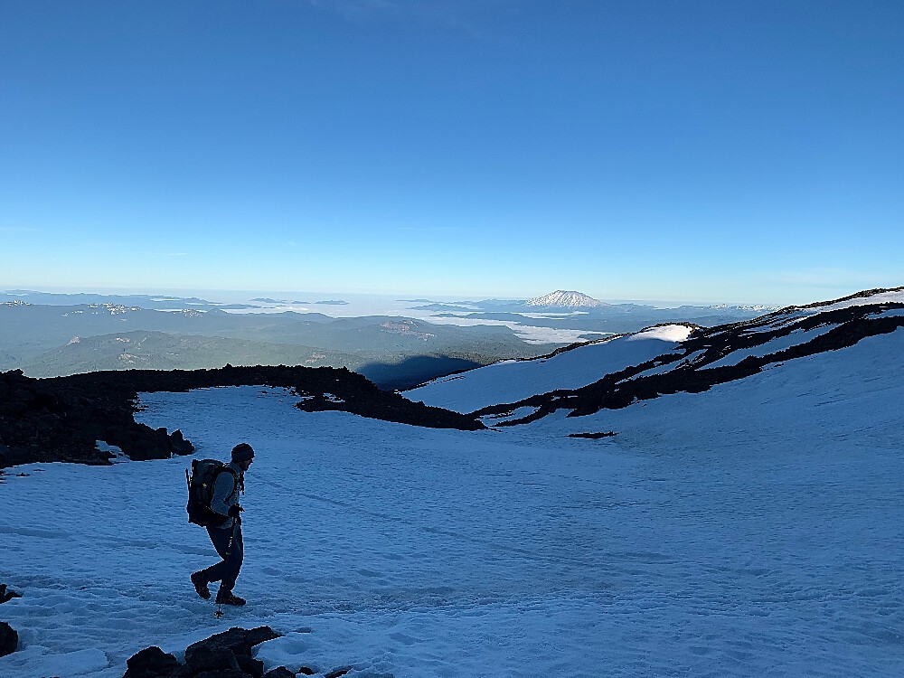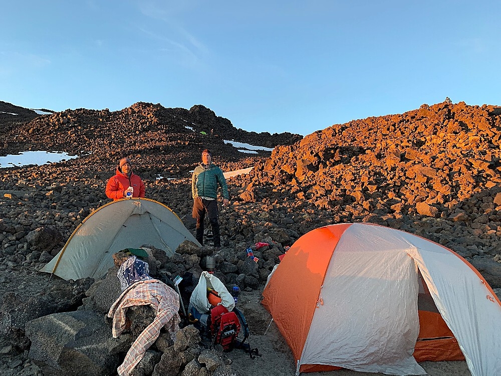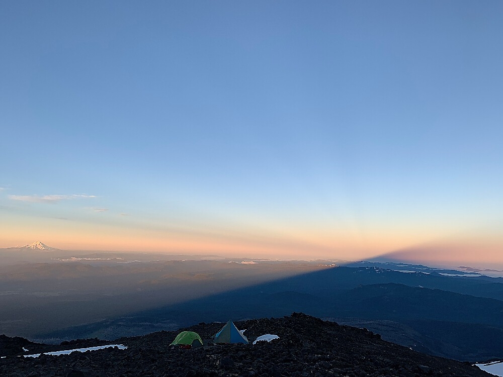 Trey and I had plan to camp on summit of Mt. Adams, like South Sister last month. Our fitness told us it was not to be. Dan caught up to us at Lunch Counter (9300’). We made camp and slept in warm tent and bags.