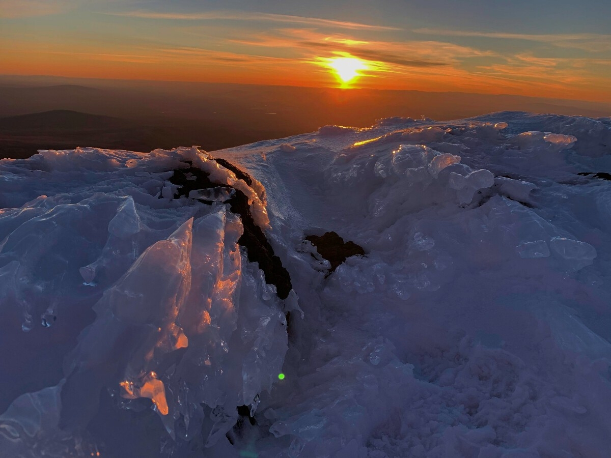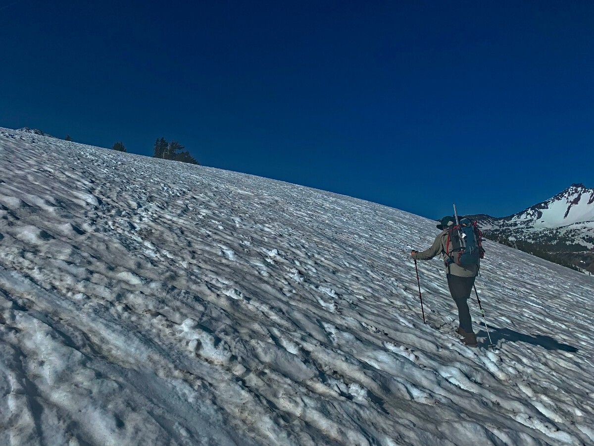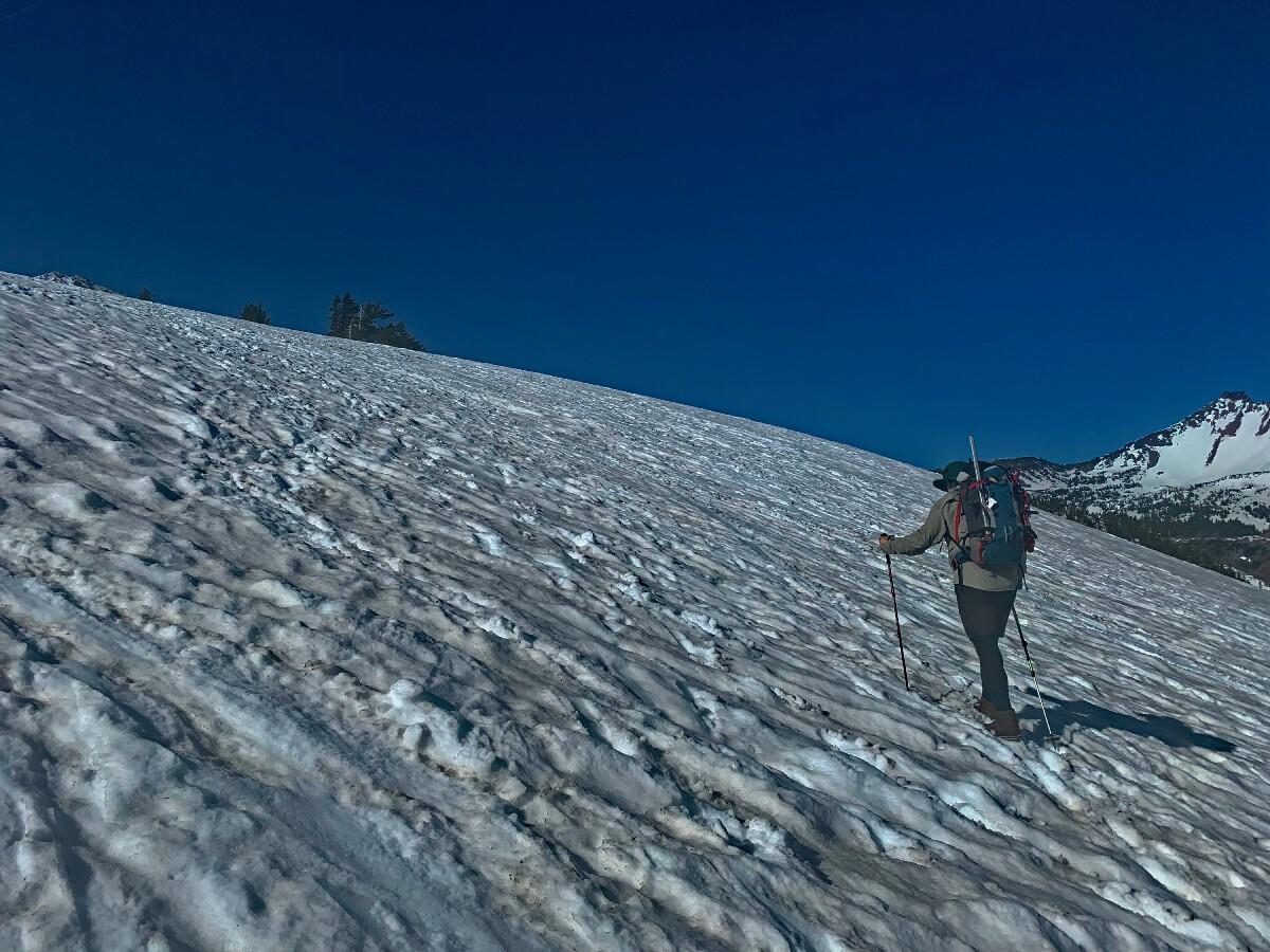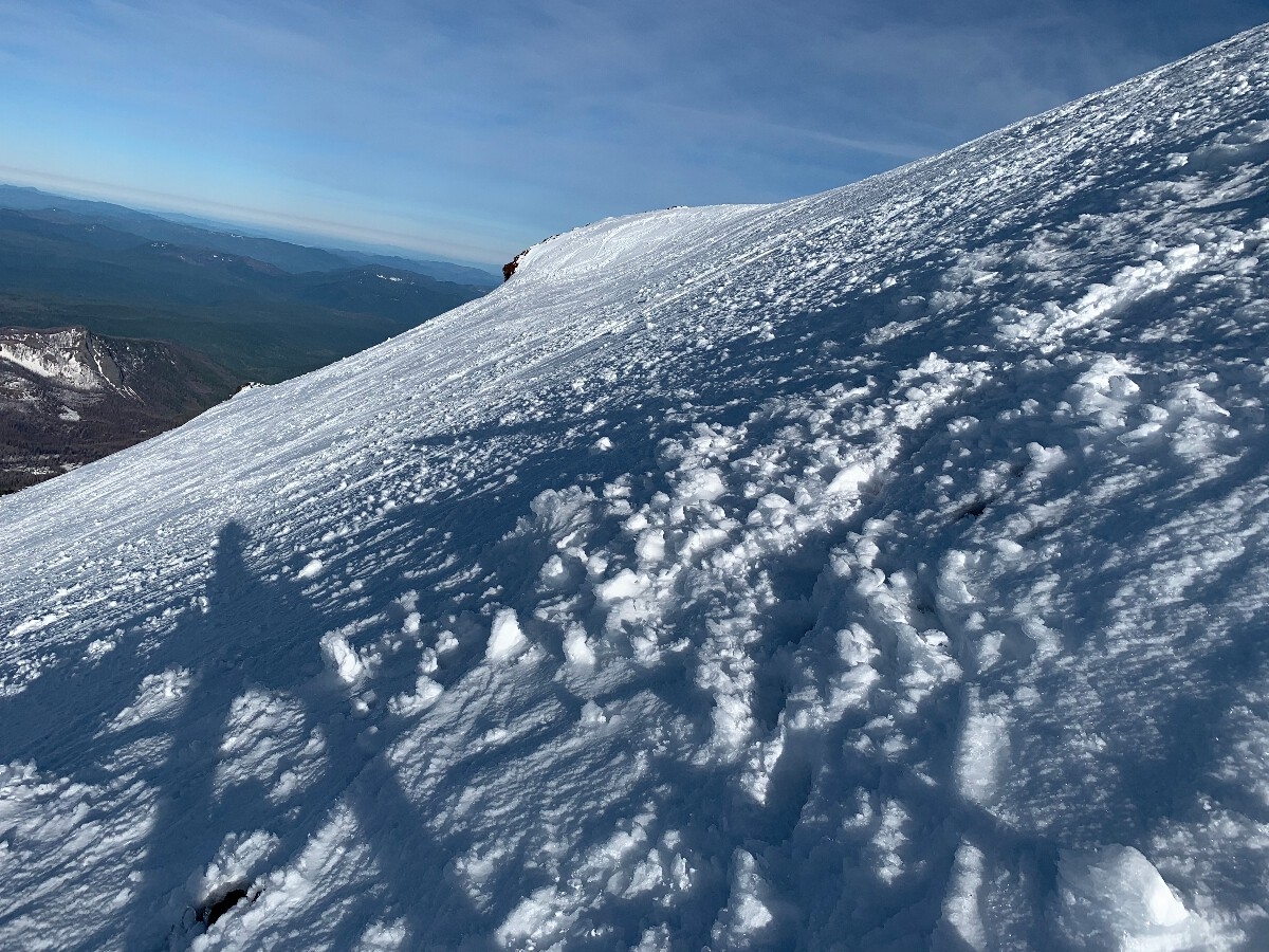 Trey and I trudged up South Sister to bivy on the summit. We got there way past dark and it was chilly as I saved 6oz by leaving the tent fly in the car. I might’ve burned a hole in my sock trying to dry it out, so I stole Trey’s socks for the next day. The summit sunrise was spectacular as expected and requested.