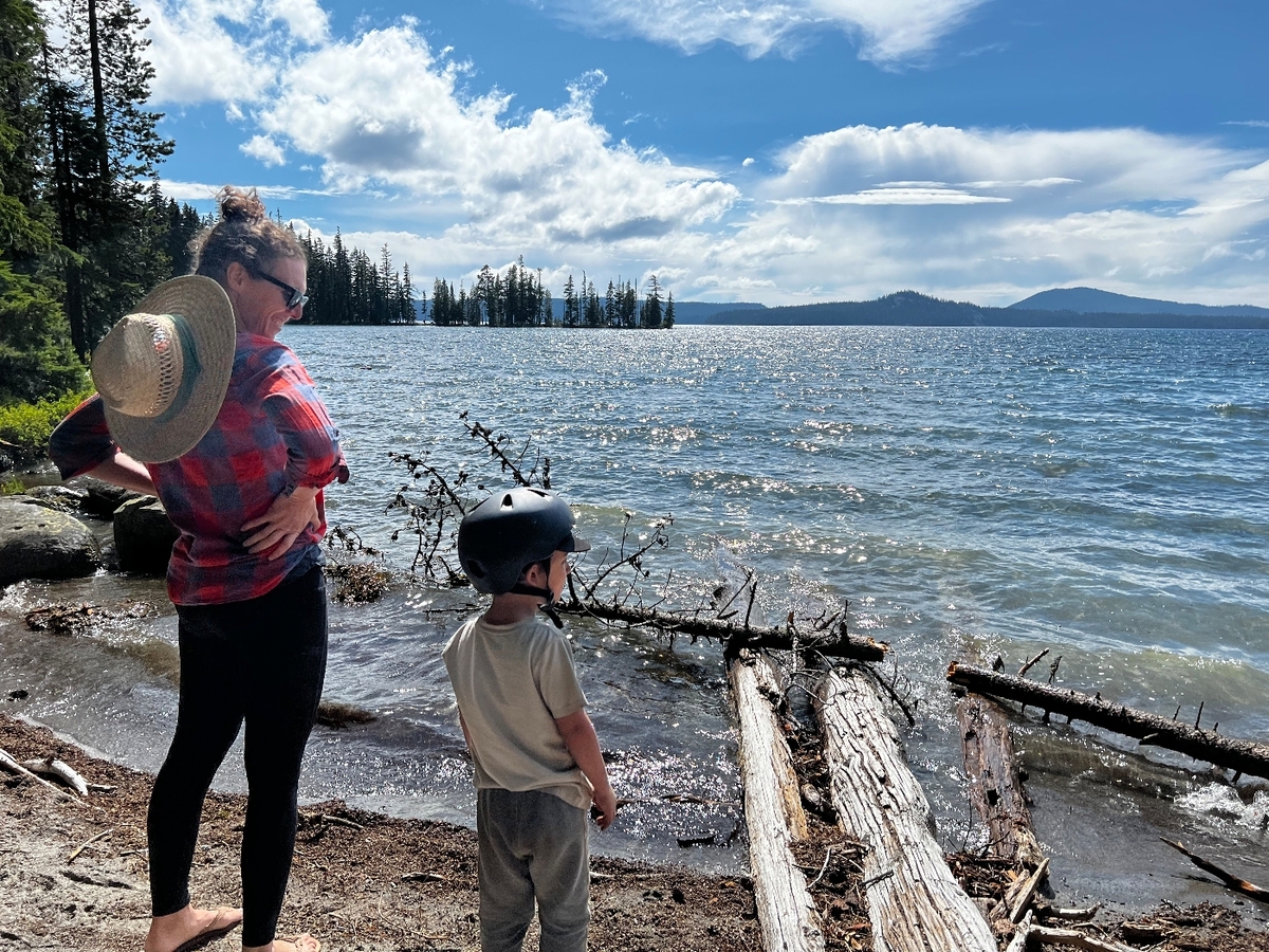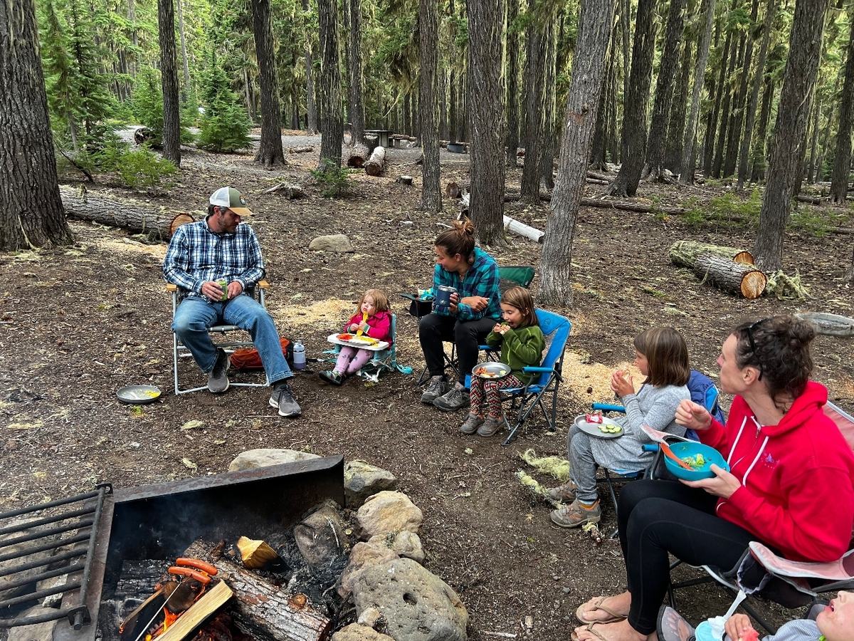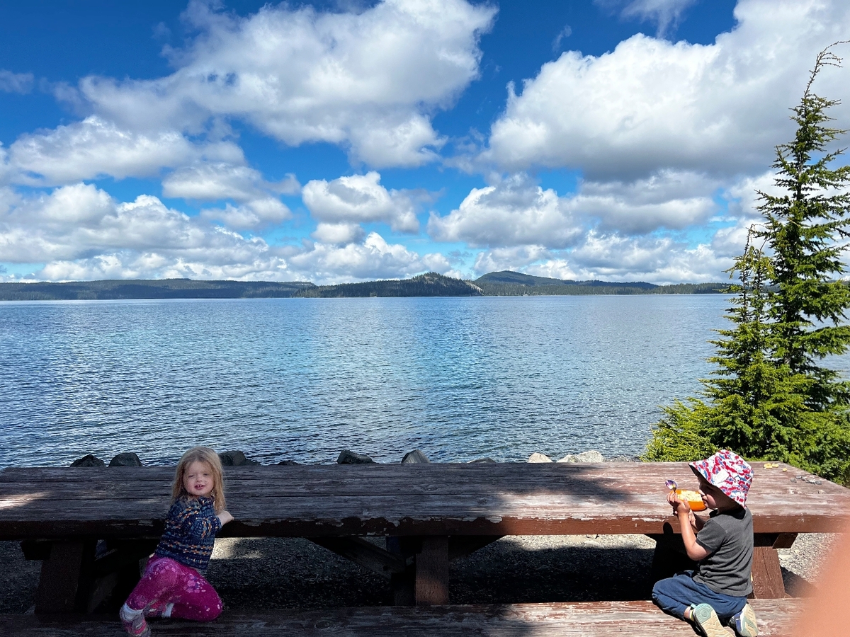 We went to Waldo Lake to camp with Dan and V, and the Ruth family. The mosquitos were so bad we went home after one night to have fire in the back yard.