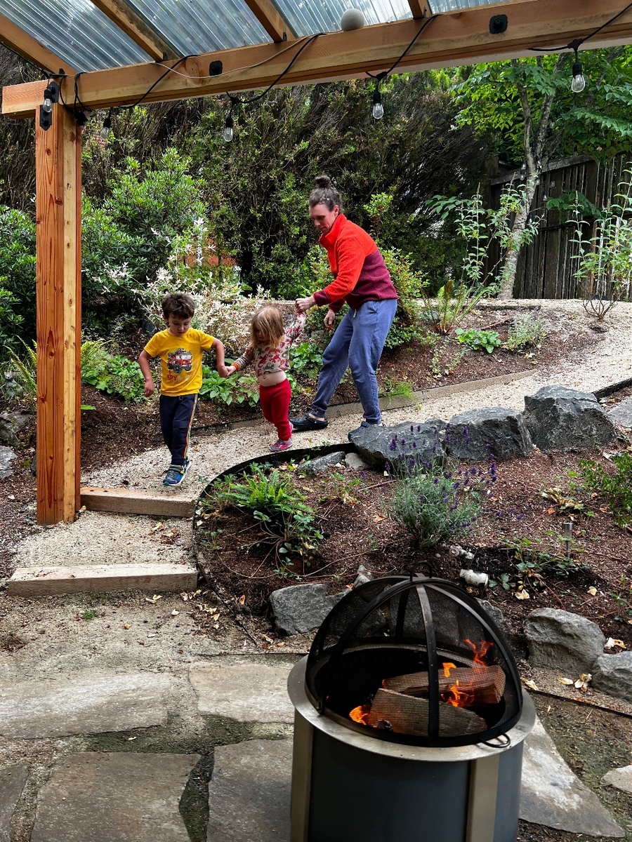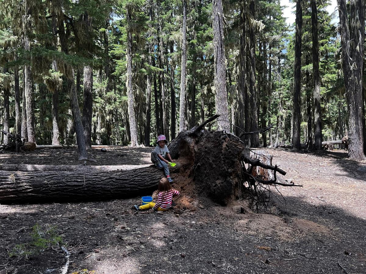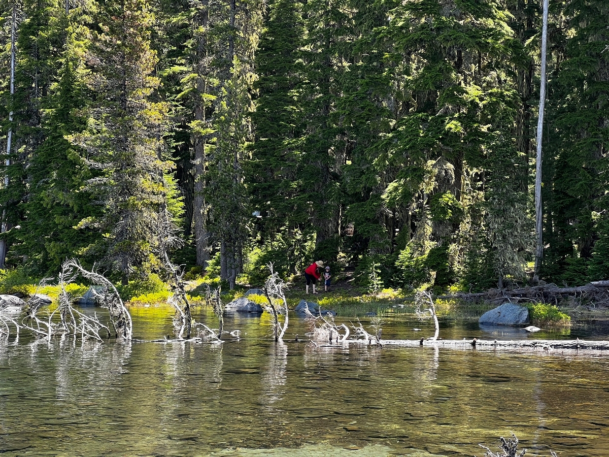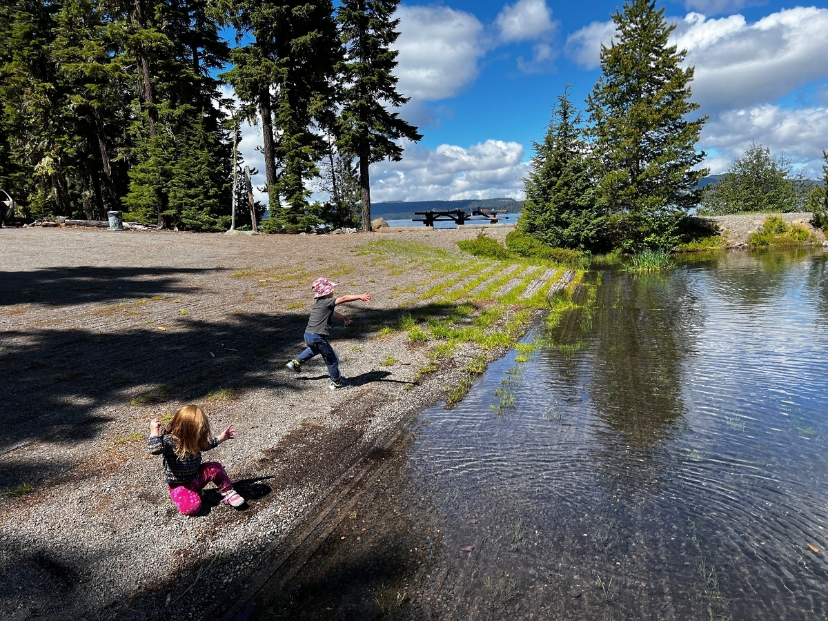 We went to Waldo Lake to camp with Dan and V, and the Ruth family. The mosquitos were so bad we went home after one night to have fire in the back yard.