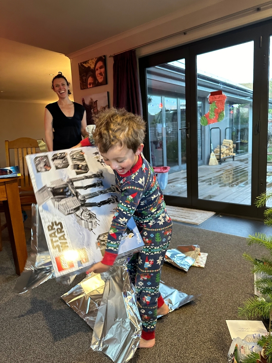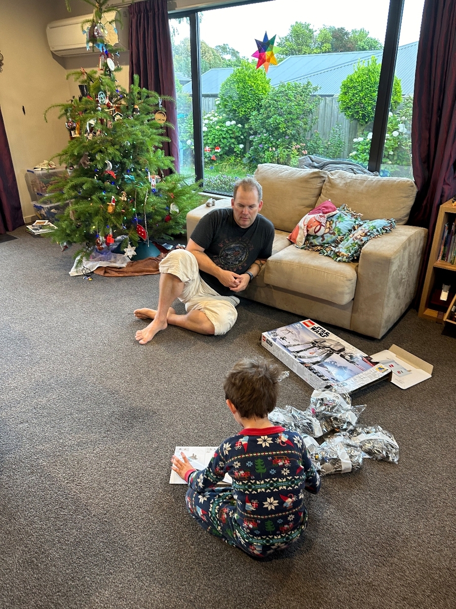 We celebrated Christmas down here with the A/C going. Lamb and cinnamon rolls were still eaten. Oscar got a few Legos so his day was set.