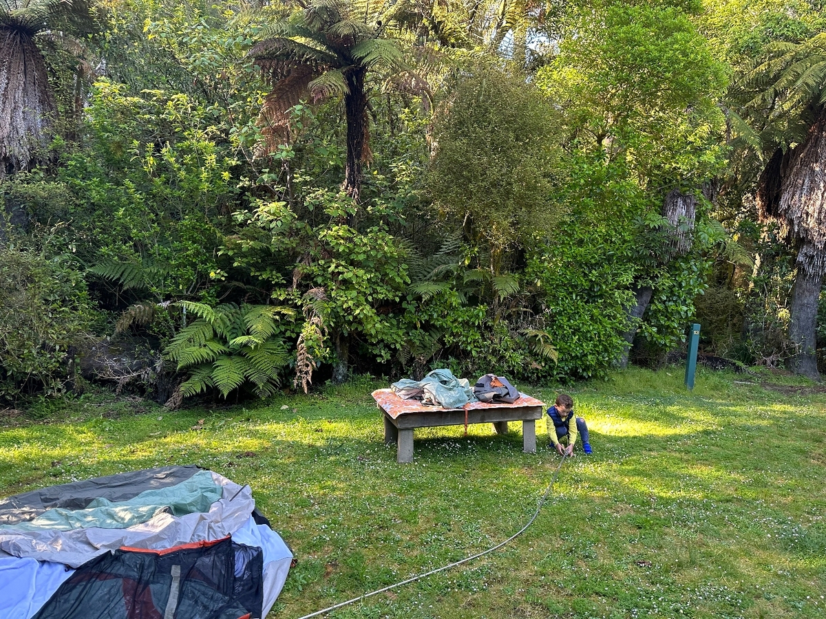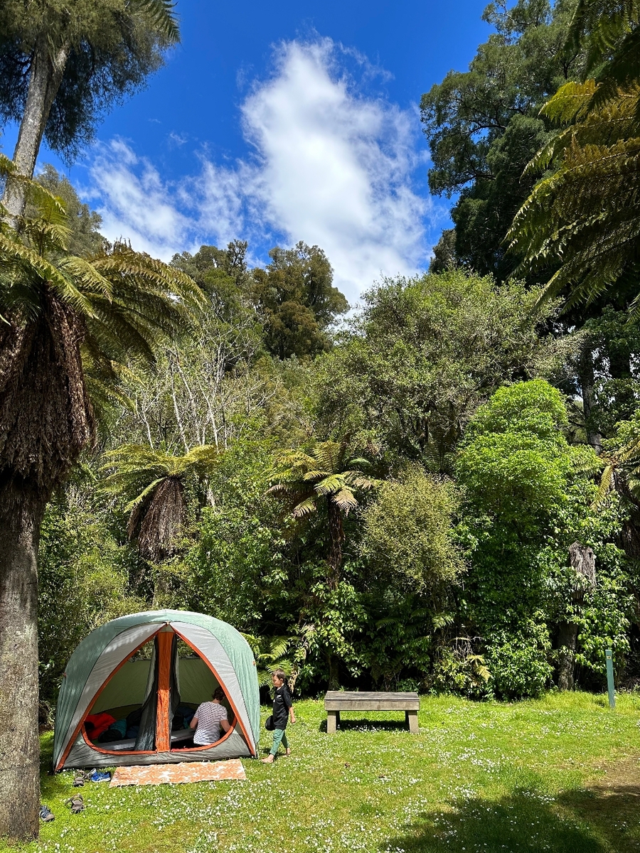 Weekend camping at Pelorus Bridge up in the valley. Our first spot was just a place to park the car in some dirt, so we were able to switch to a nice grass spot for our tent. Camp sites don’t have tables or fire rings like back in Oregon. There is a large communal building with showers, tables, and stoves. It was pretty nice.