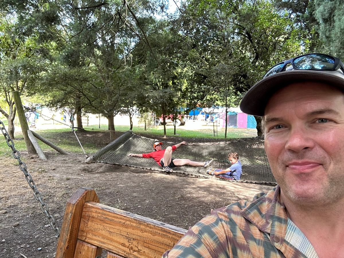 We went to Quinneys Bush after New Years to camp for a few days. It’s a huge campground and has a swimming hole with slide, a huge flying fox (zipline), another huge water slide, and lots of biking for littles. Oscar had a great time running around and keeping in touch with us on our walkie talkies. Many kids came to know Burton and sit with us while he got much attention.