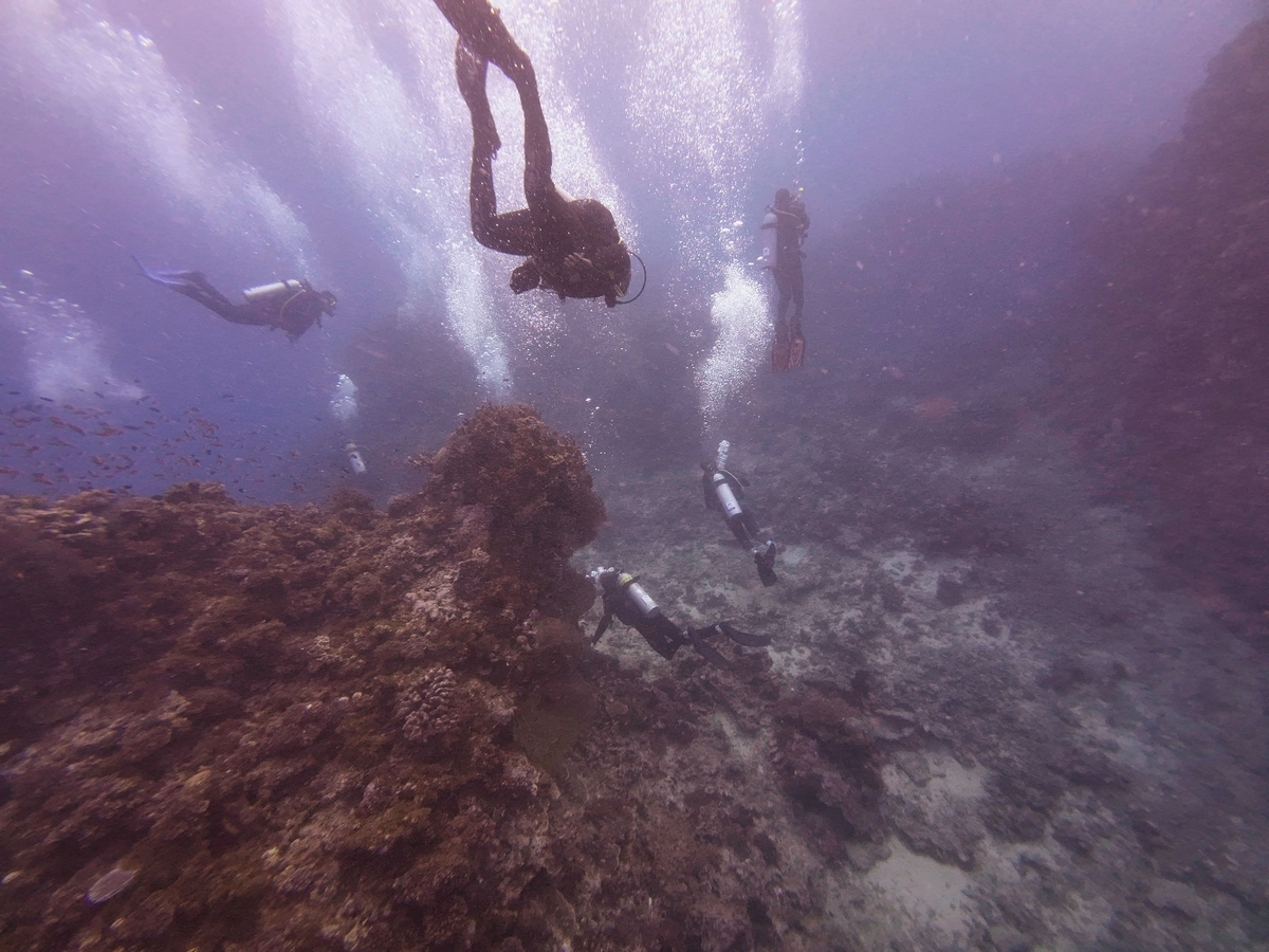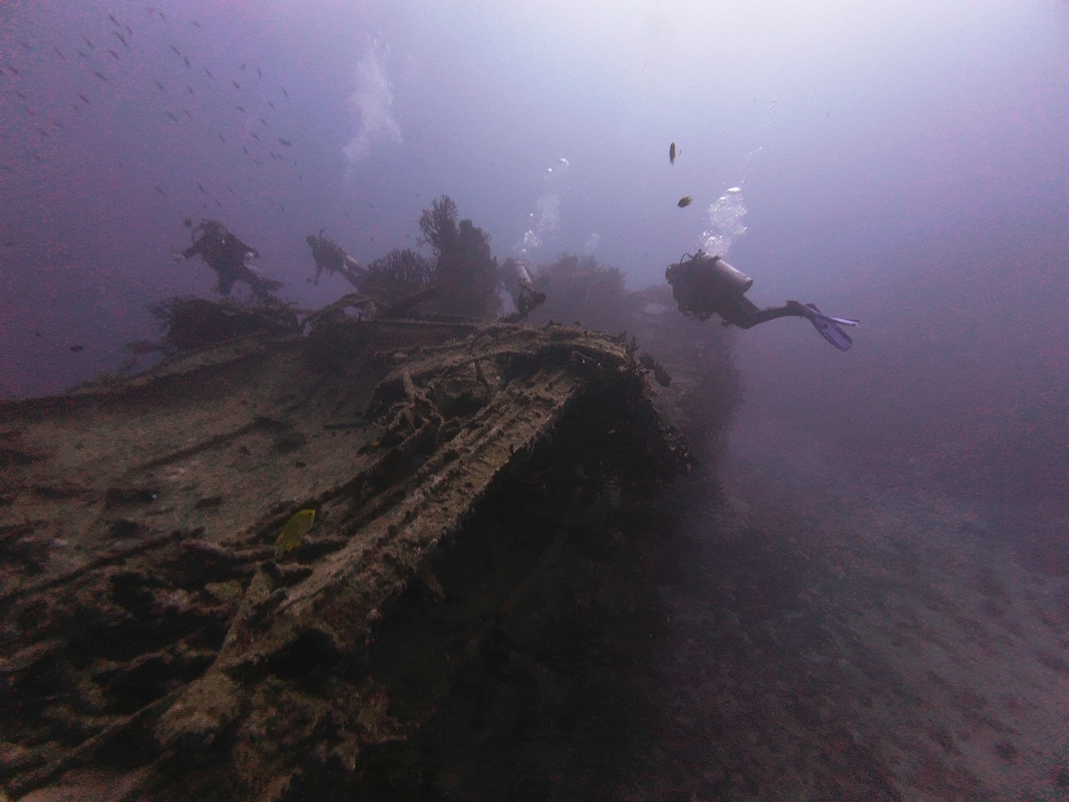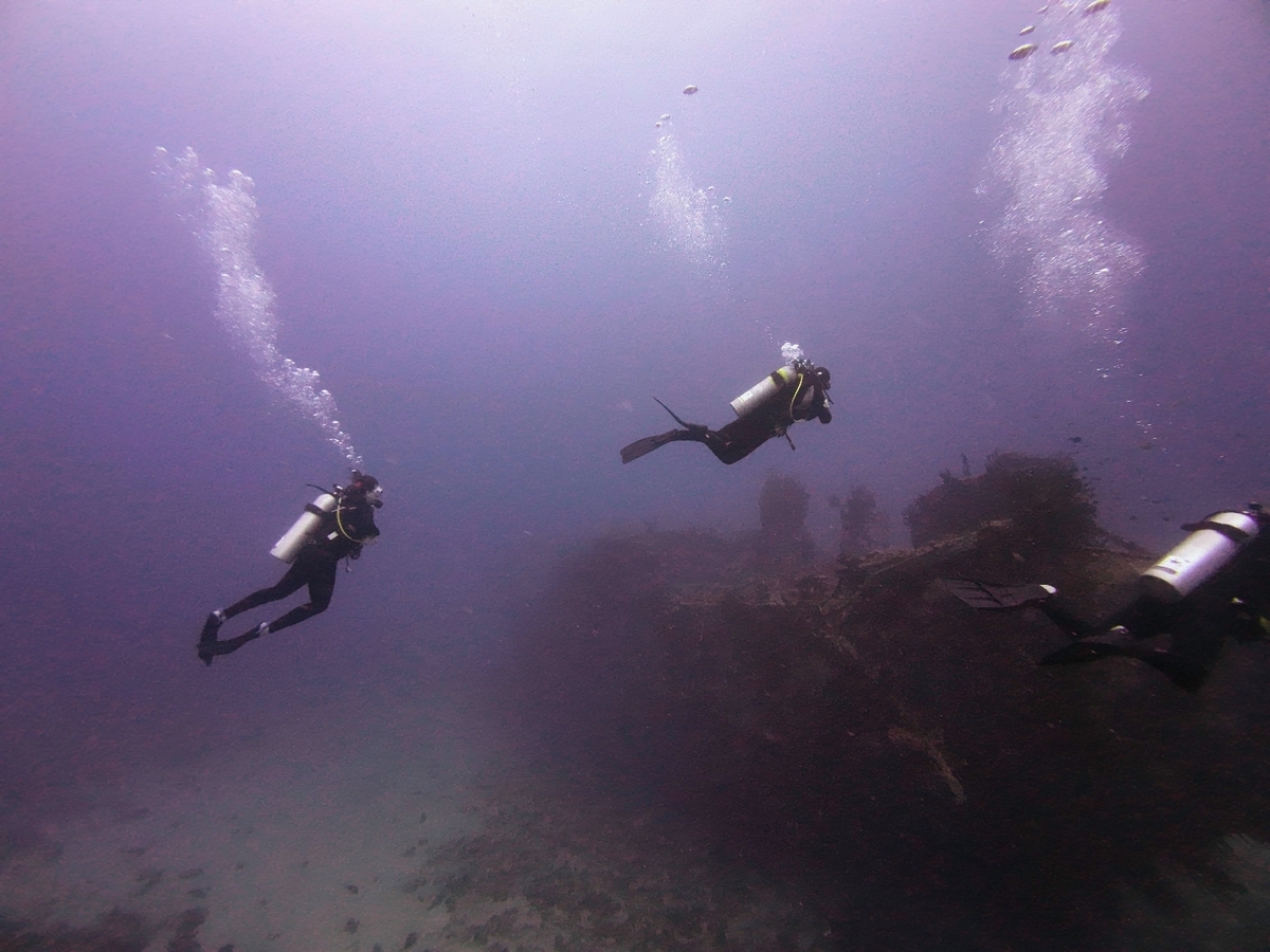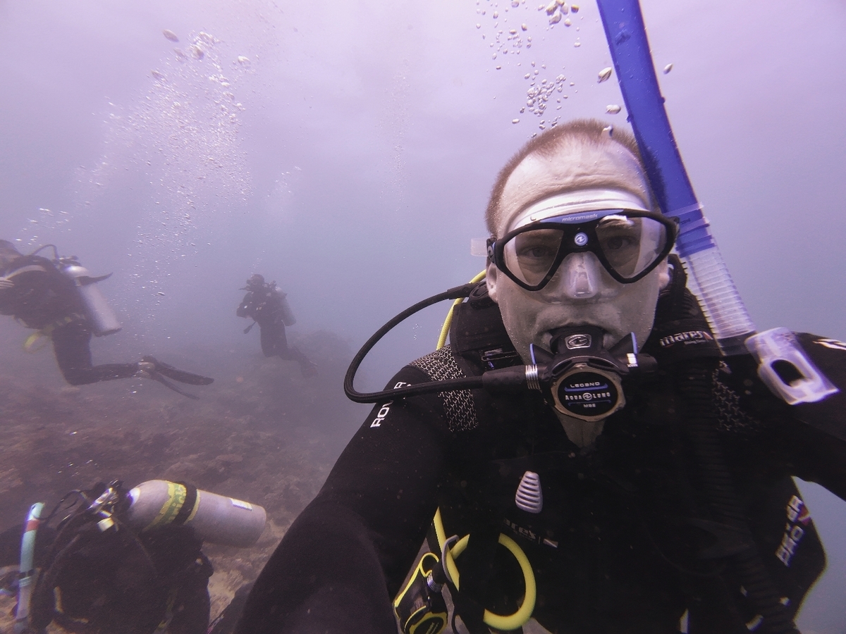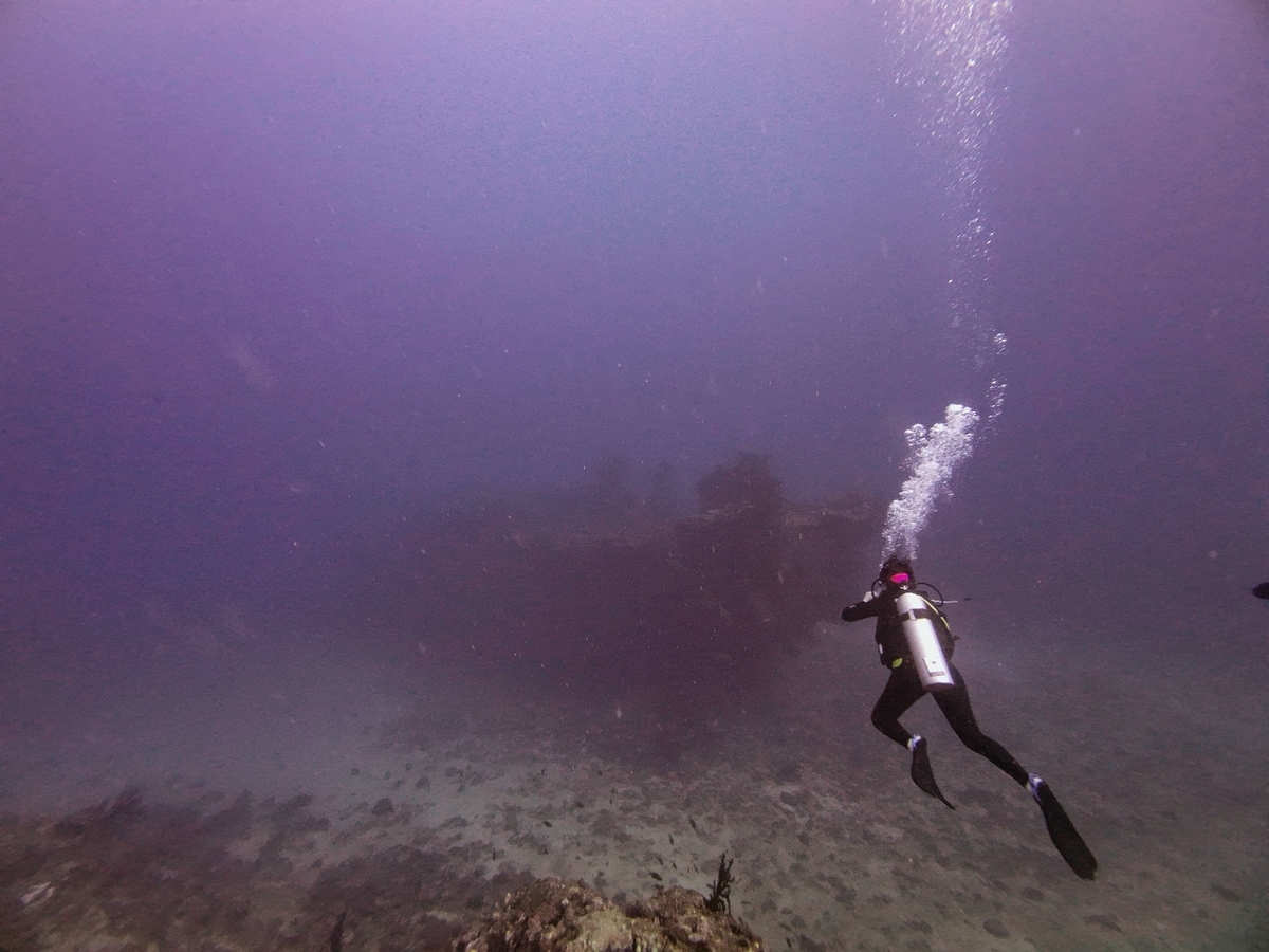 First warm water dive, barely needed a wet suit (27C). Saw a reef shark and a cool sunken trawler. On the second dive the boat was not there as the mooring had broken. After 45 min the boat came back and we all had biscuits. Was a reminder to bring the safety sausage and always have the PRB with us.