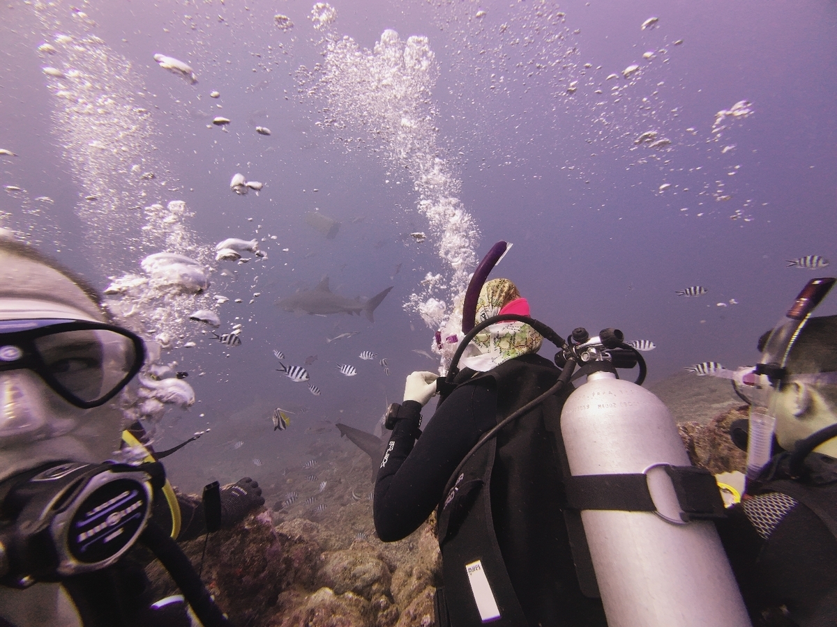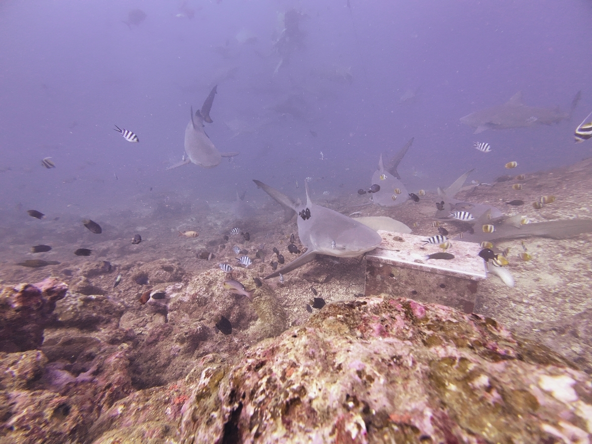 Rachel gave up her second dive so I could get in a shark dive. The first five minutes were not very comfortable but then it settled down and was fun to be near the sharks. So now we don’t have to dive with them again.