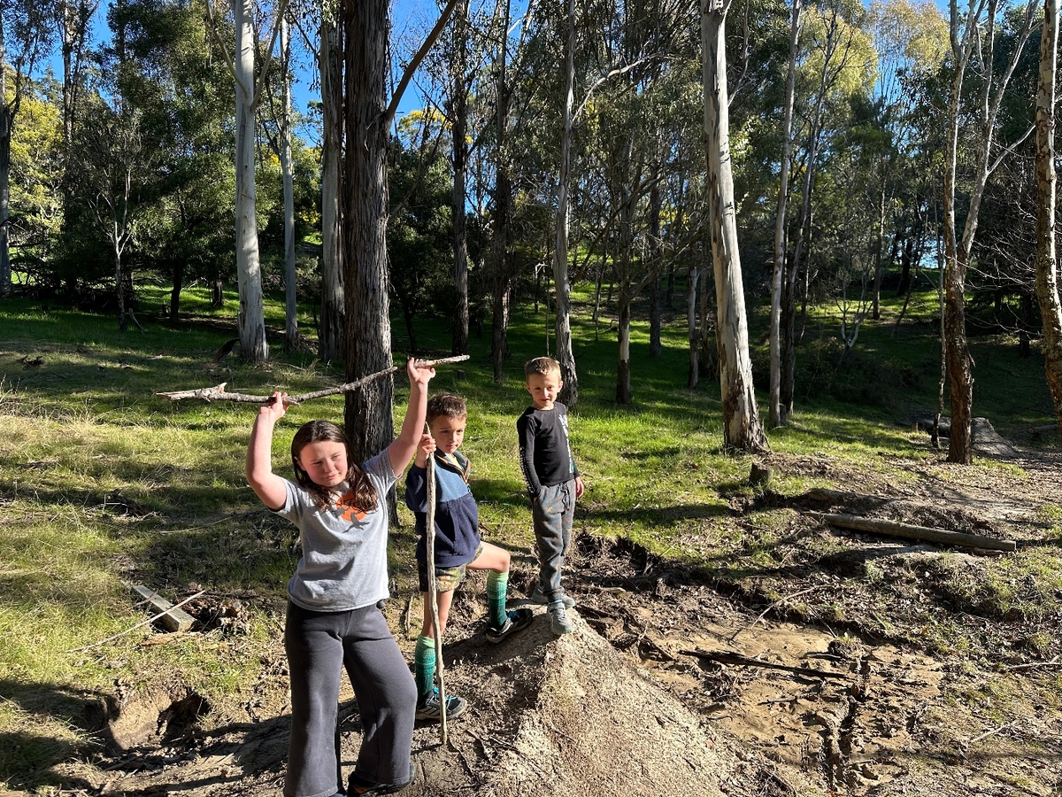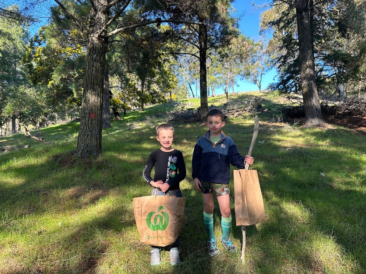 Oscar and Ethan went into the park to get pinecones for fires. We lugged a huge bag back out to the road to be ferried by car.