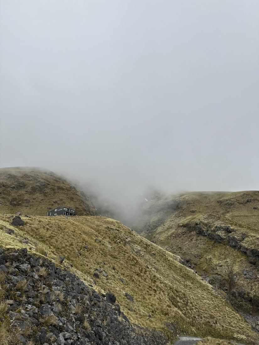 I went over to New Plymouth to climb Mt. Taranaki. I went up in afternoon to stay the night at Tahurangi Lodge. The hut had warm water, pillows, charging stations, fridge, everything you’d want in a hut. I ate my freeze dried meal and went to bed early.