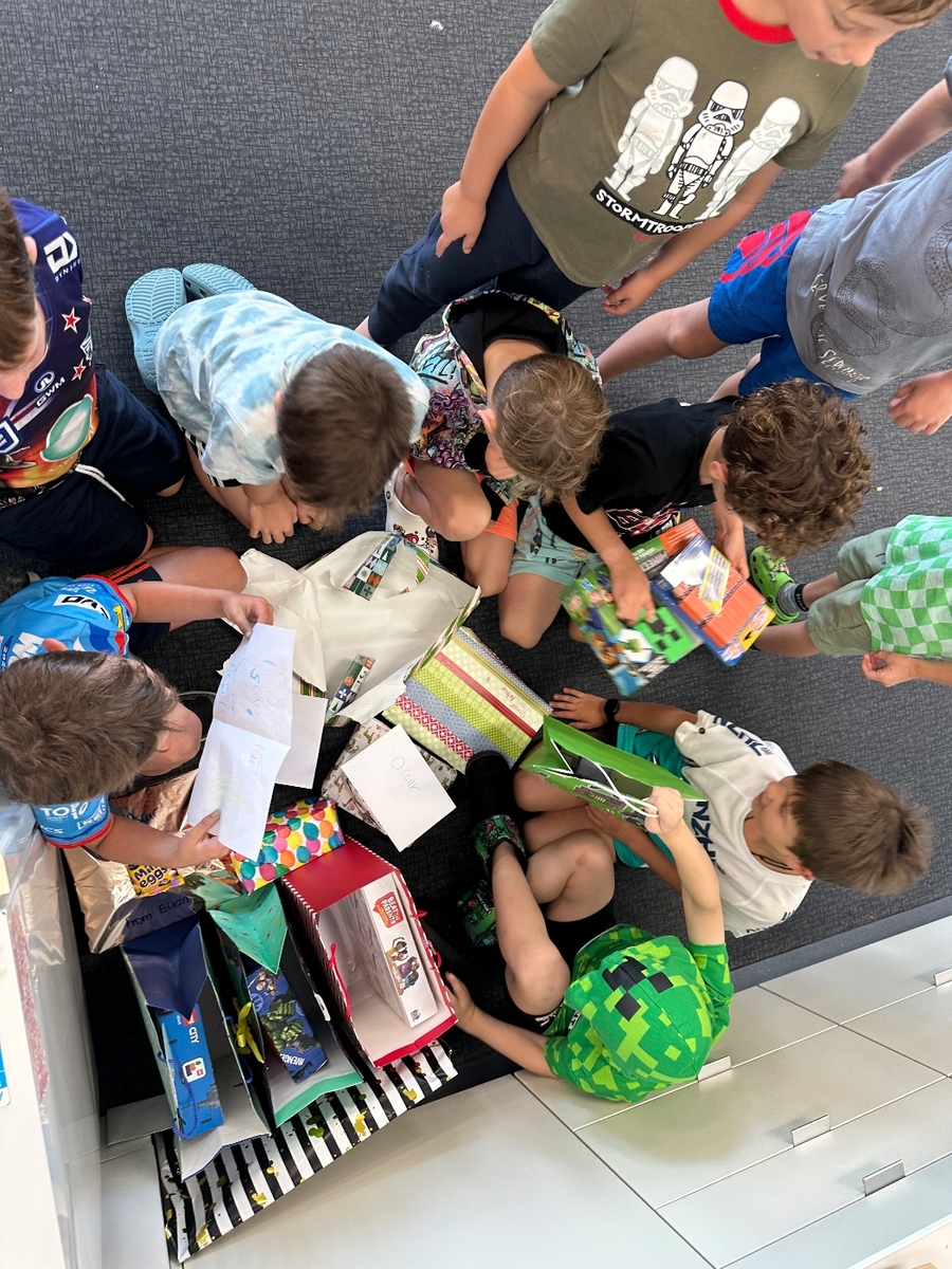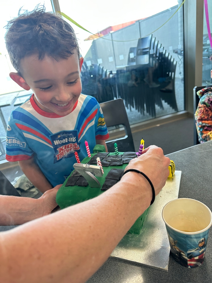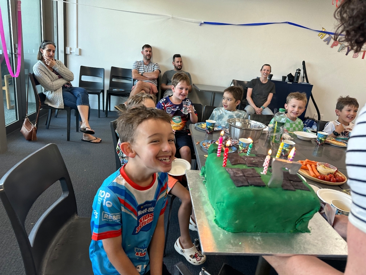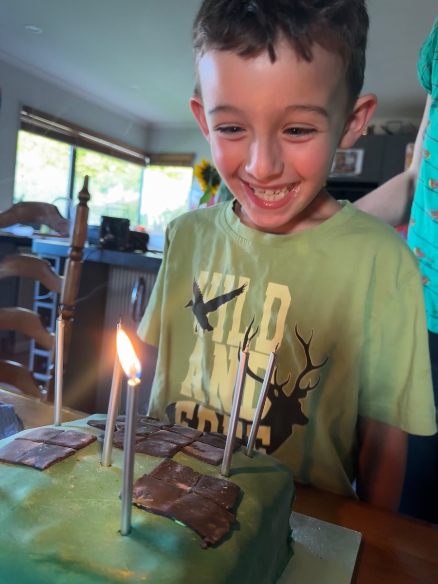 Oscar’s 7th Birthday. We had small thing at home with cake and Ngaire. That weekend 10 of his friends went to the pool and played on the inflatables before pizza and cake.