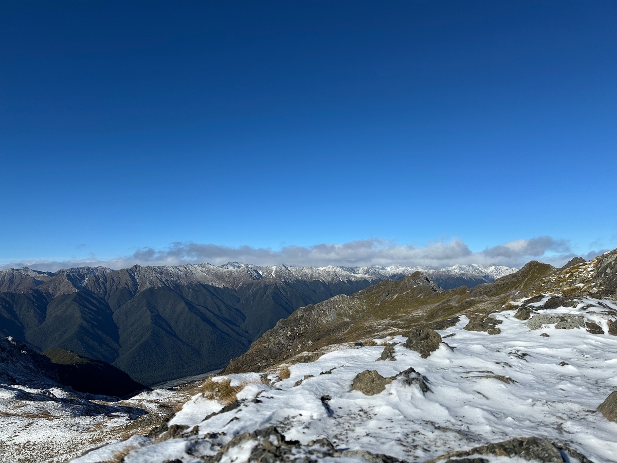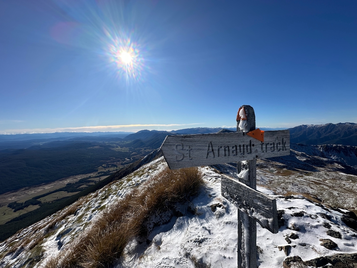 Went up to St. Arnaud to hike above Parachute Rocks. It was uber windy and finally got out the Bothy bag to stay warm while we had hot chocolate. Used the microspikes for the hike down as the snow was bit icy and slippy.