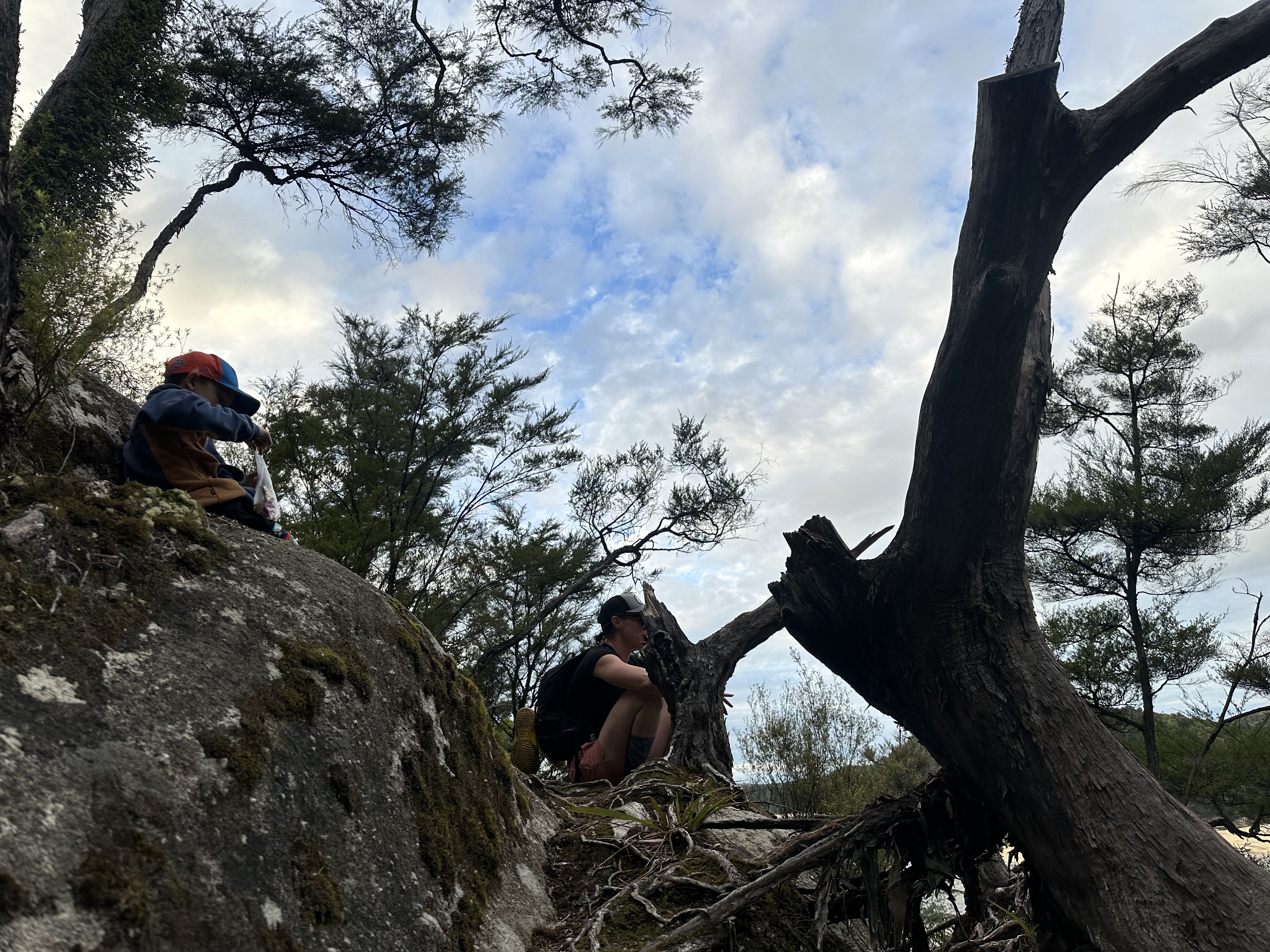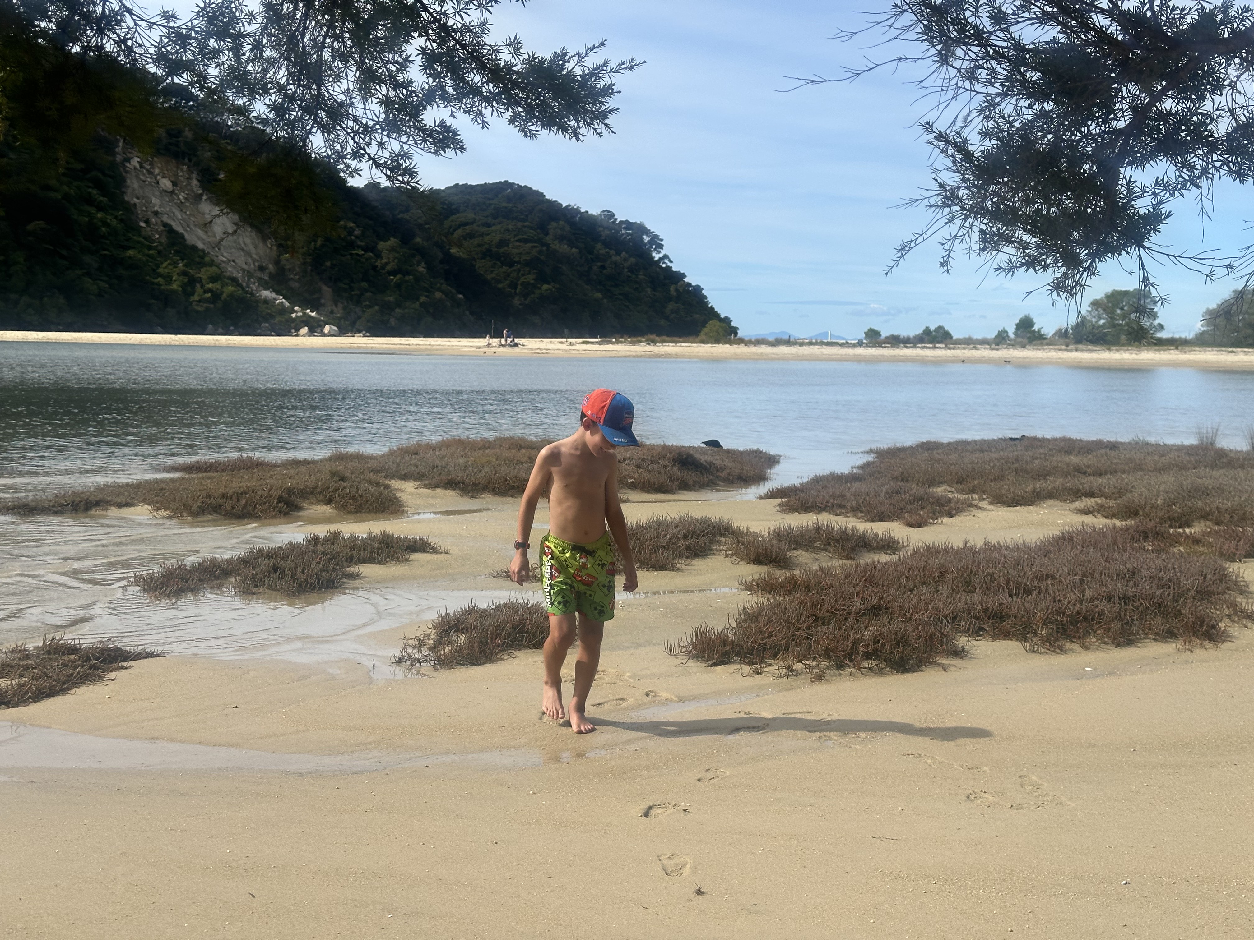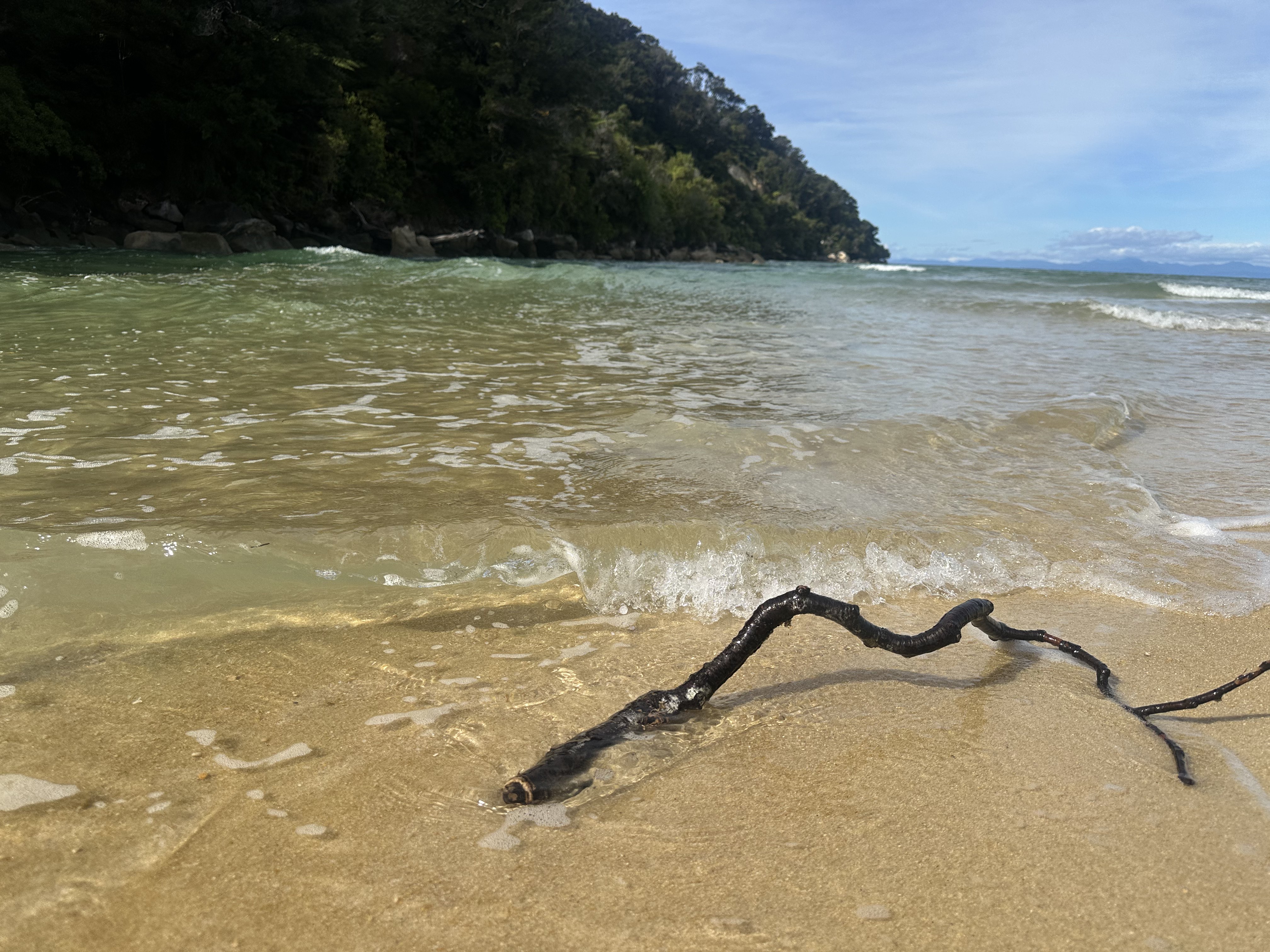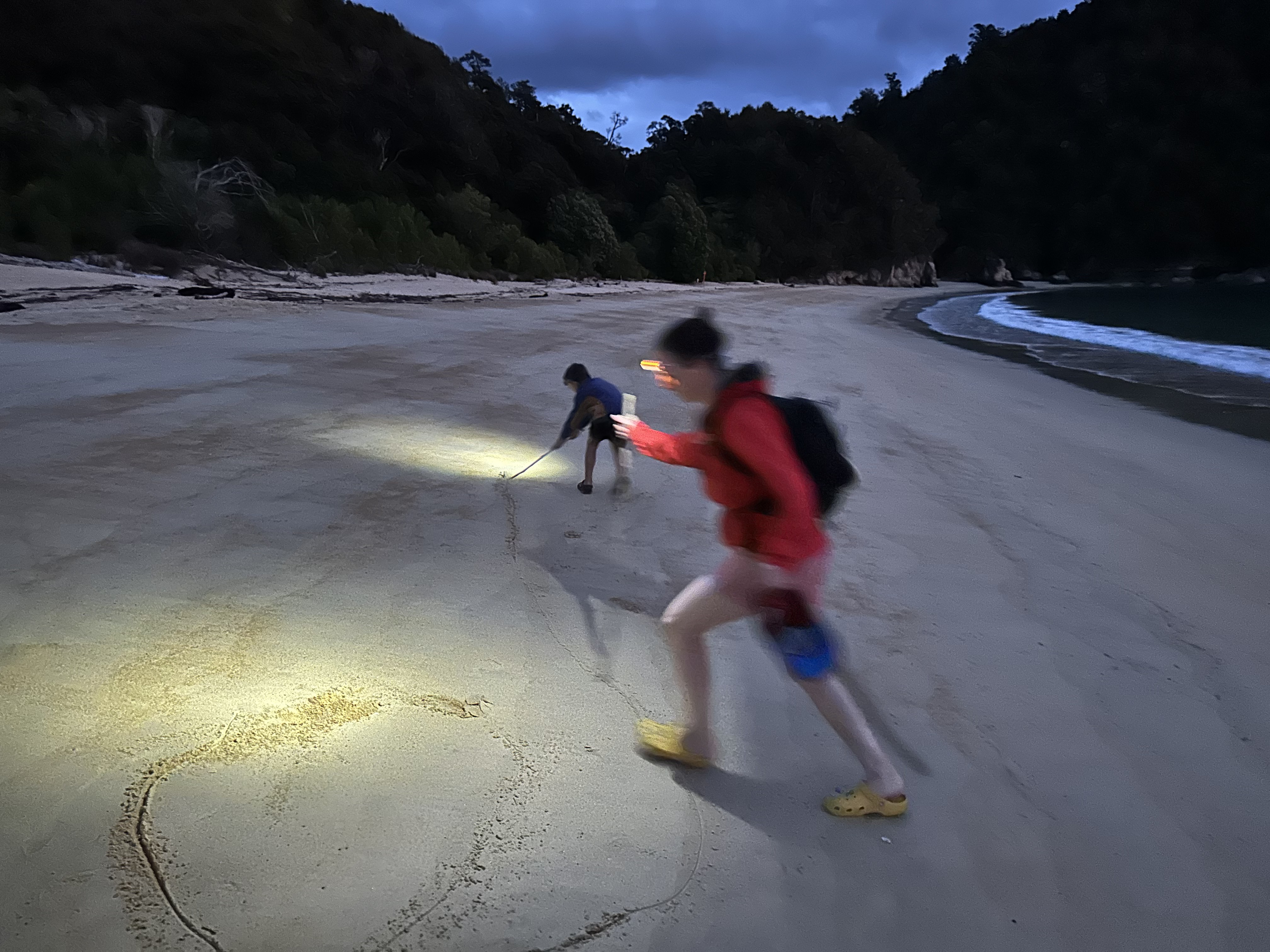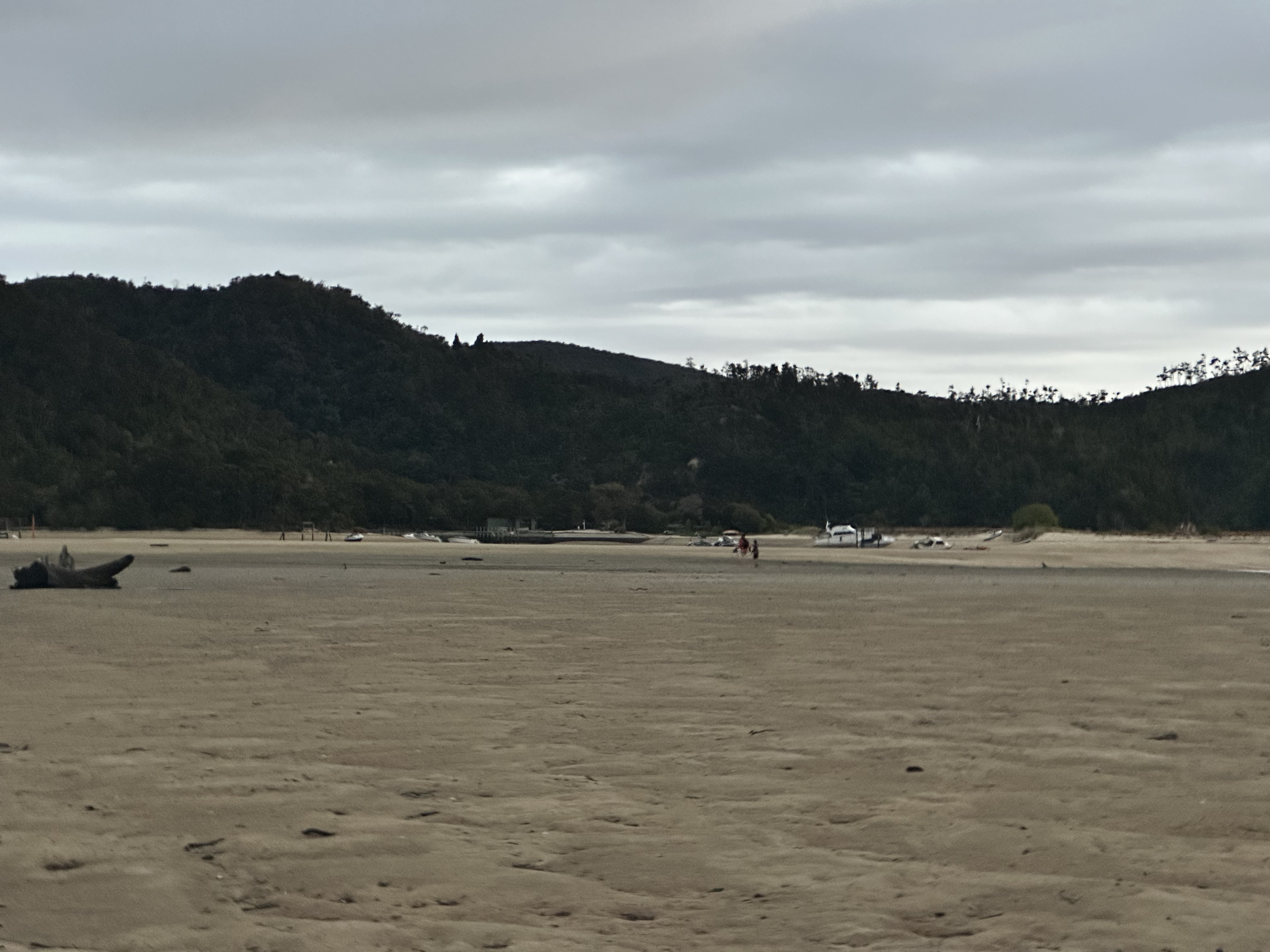 We had an early start in the dark to make our tidal crossing at low tide. Ate breakfast and tea by headlamp and then made our way to the DOC sign to drop our packs for the days Sea Shuttle. Then went to a tidal crossing as the sun came up. Oscar thought it was a bit stinky.