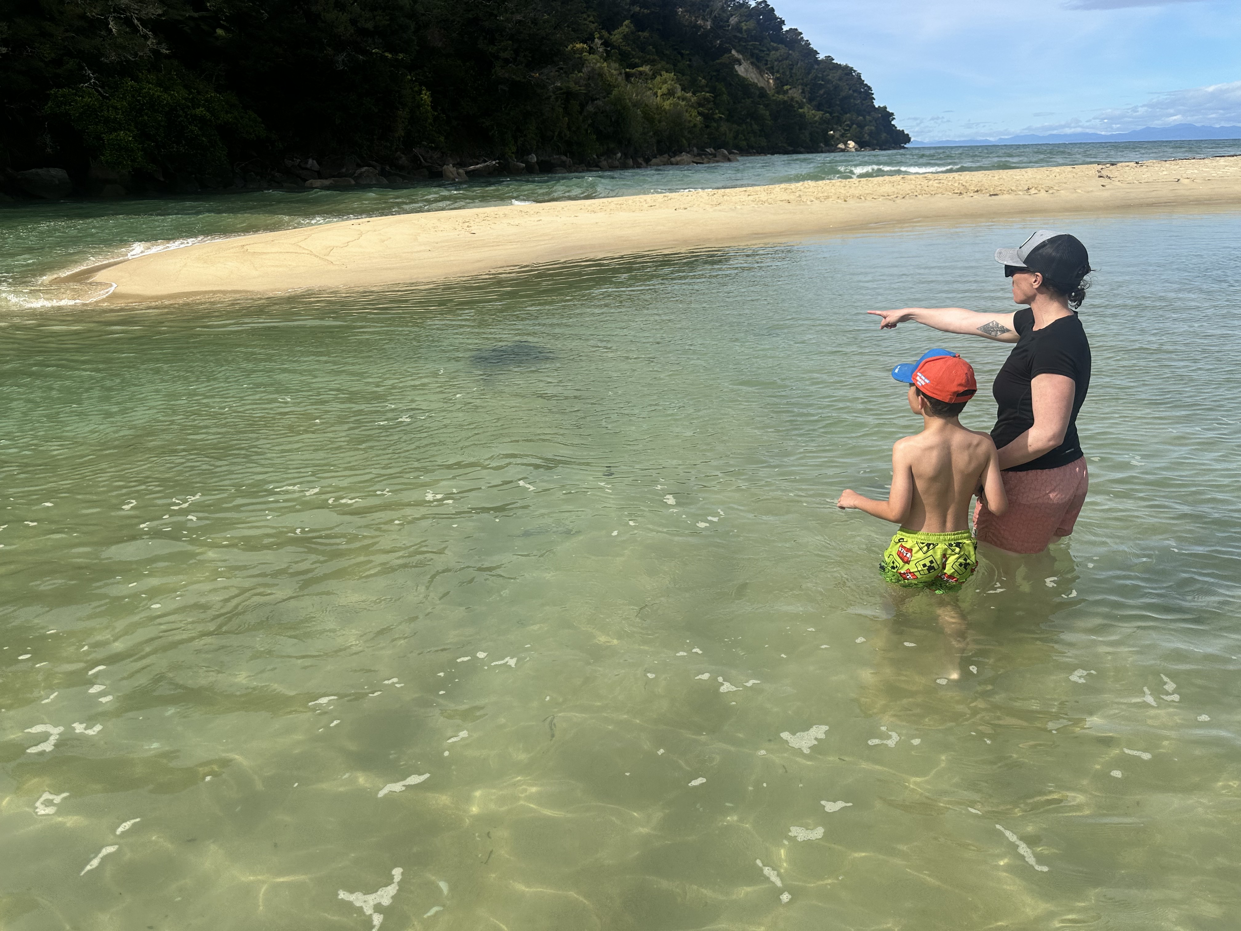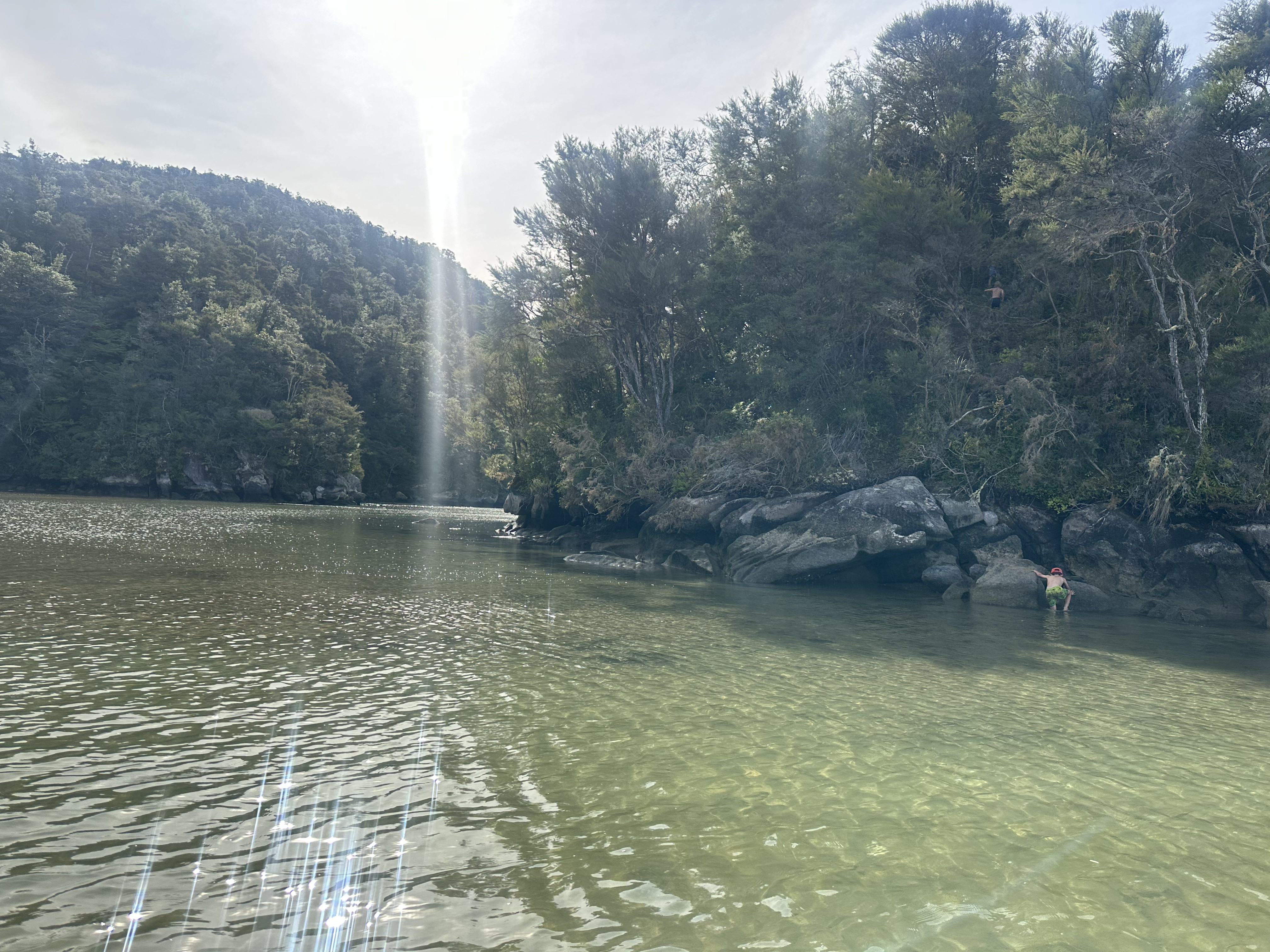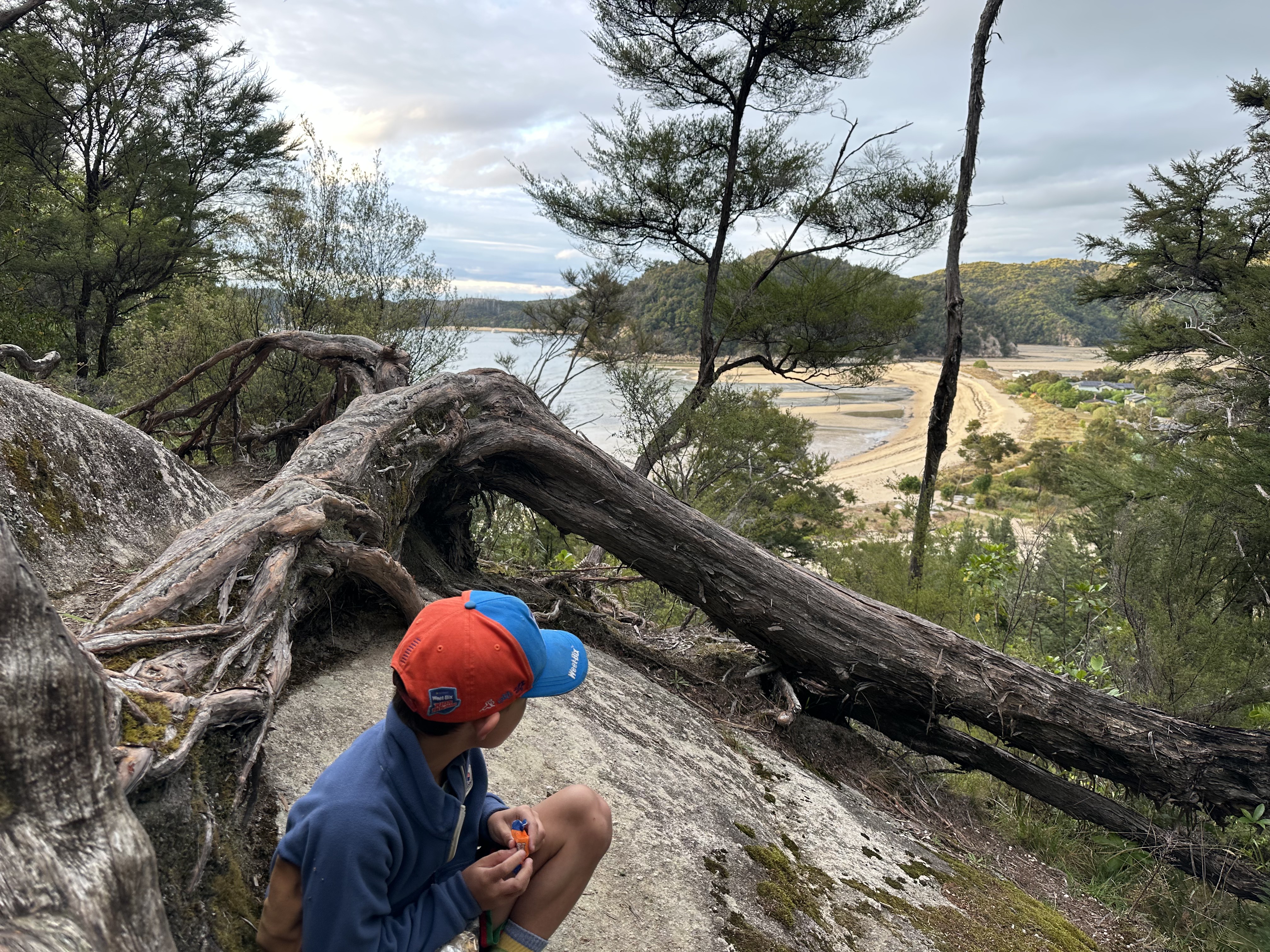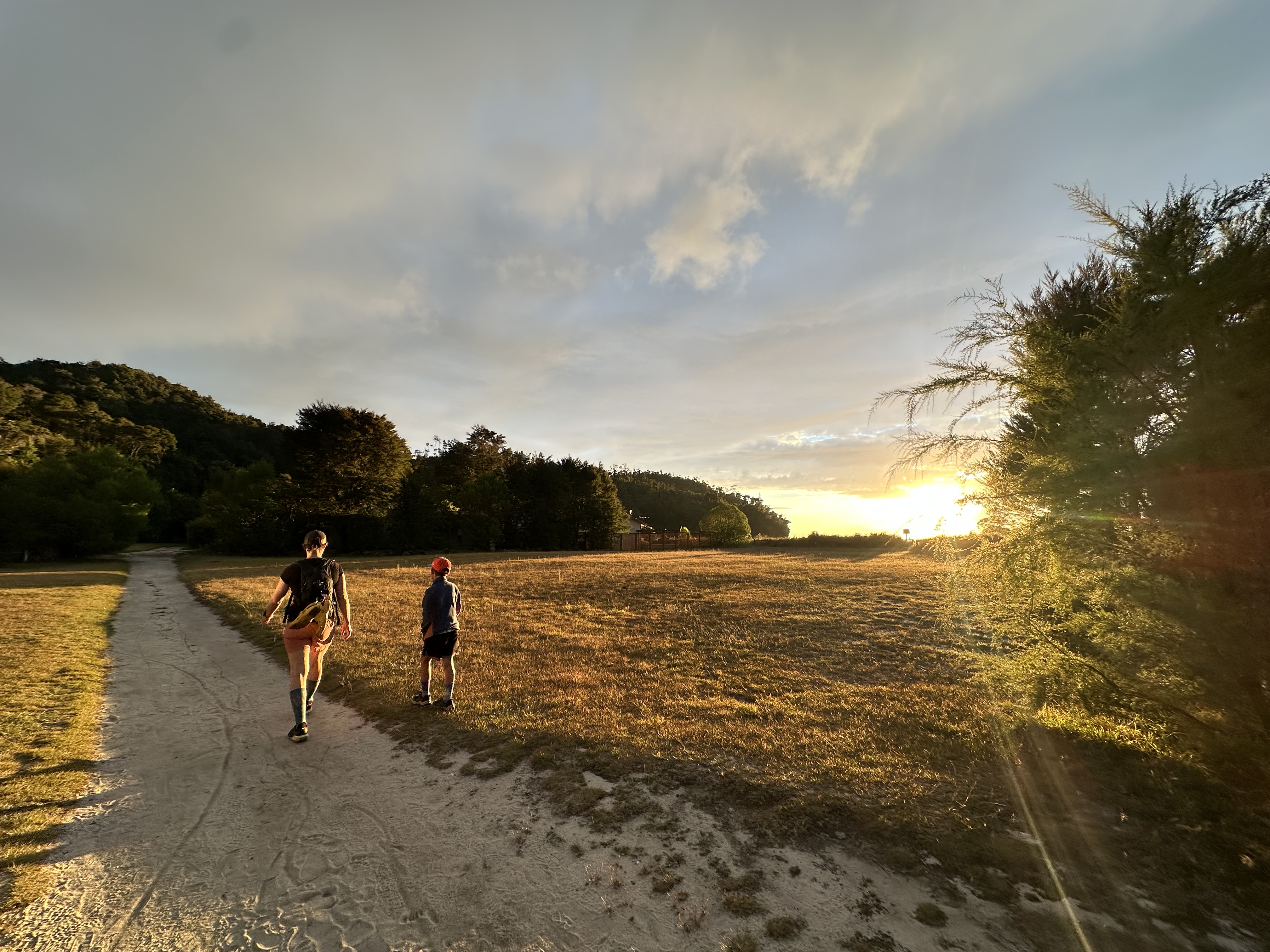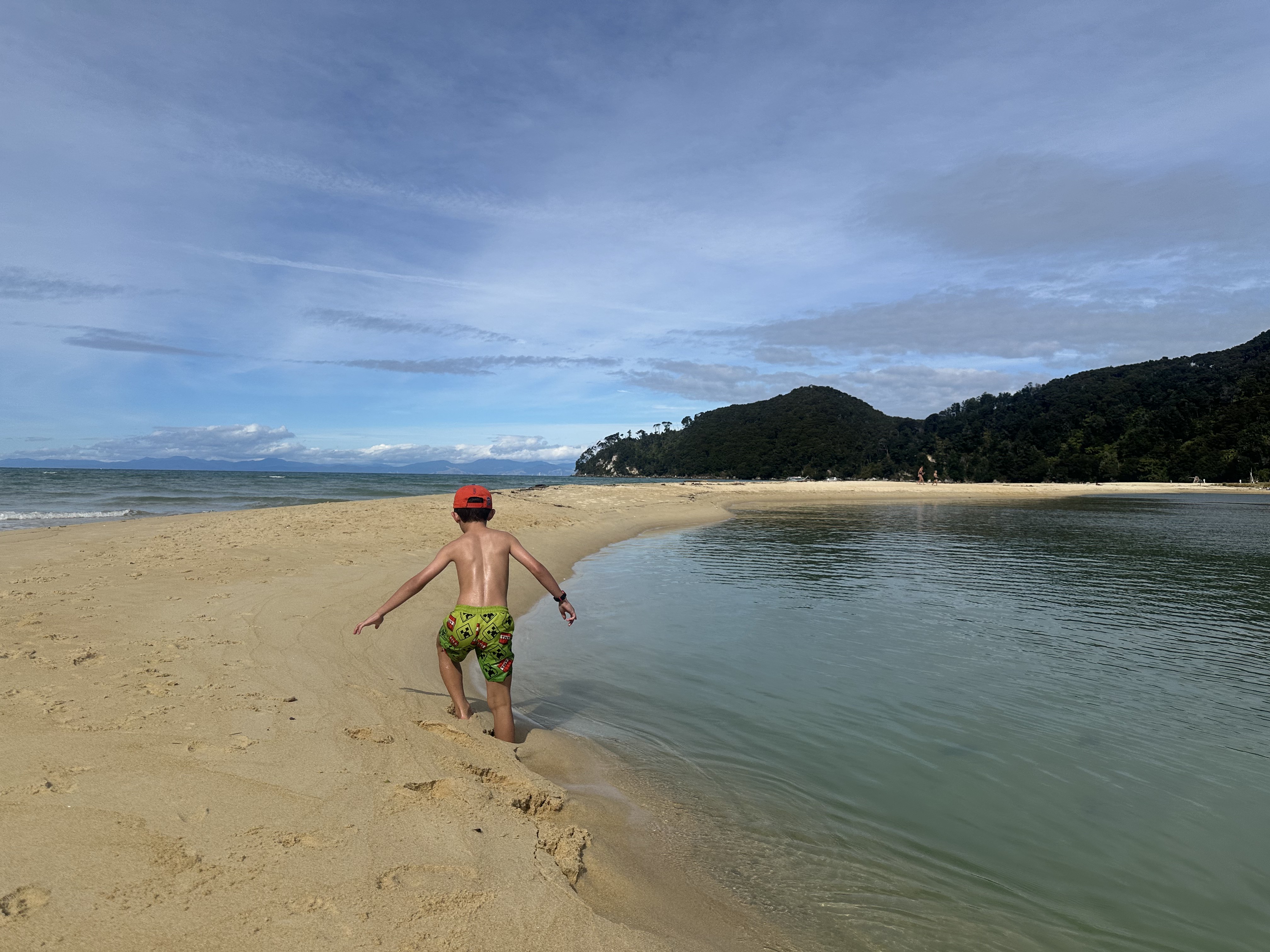 We had an early start in the dark to make our tidal crossing at low tide. Ate breakfast and tea by headlamp and then made our way to the DOC sign to drop our packs for the days Sea Shuttle. Then went to a tidal crossing as the sun came up. Oscar thought it was a bit stinky.