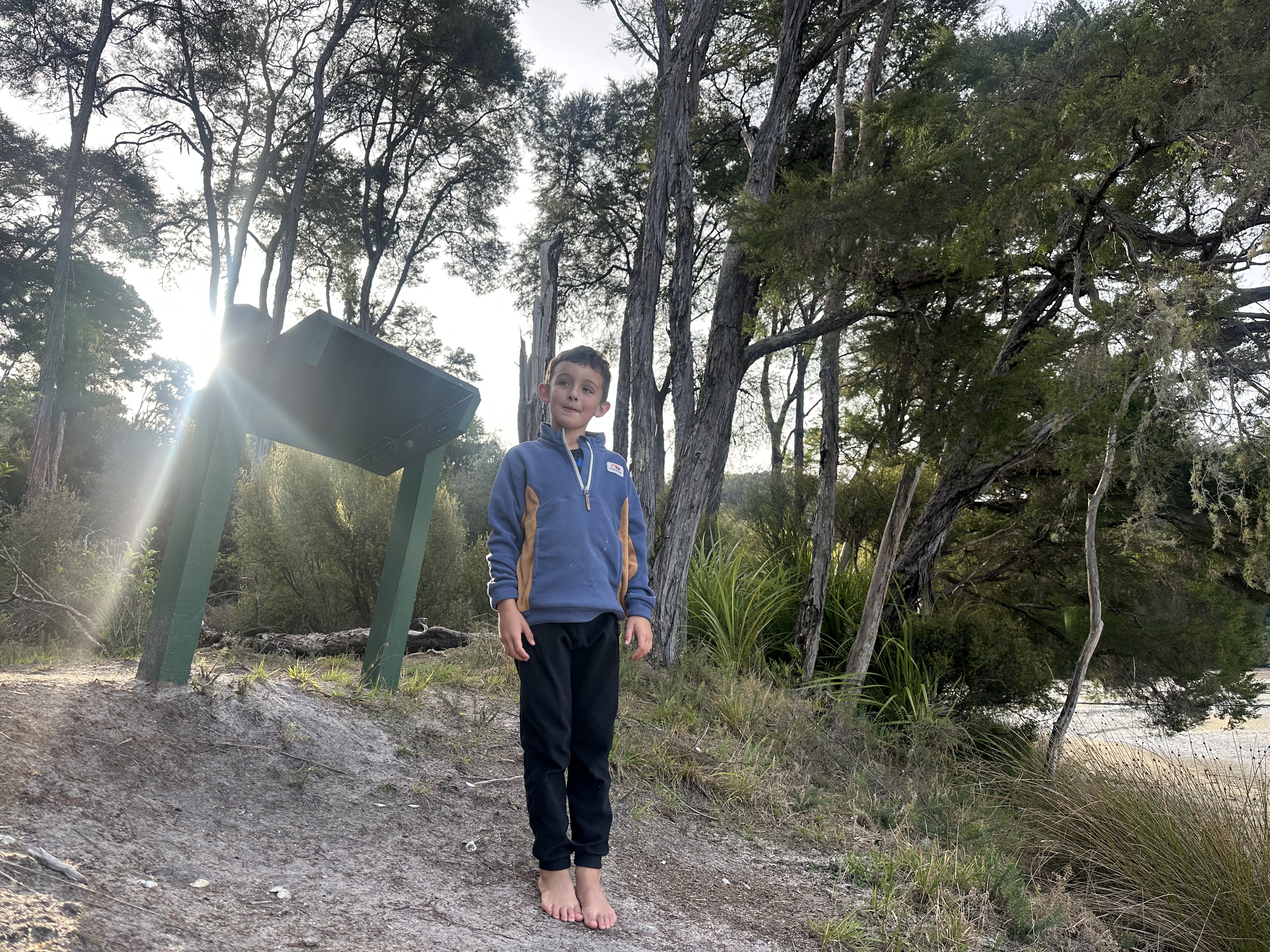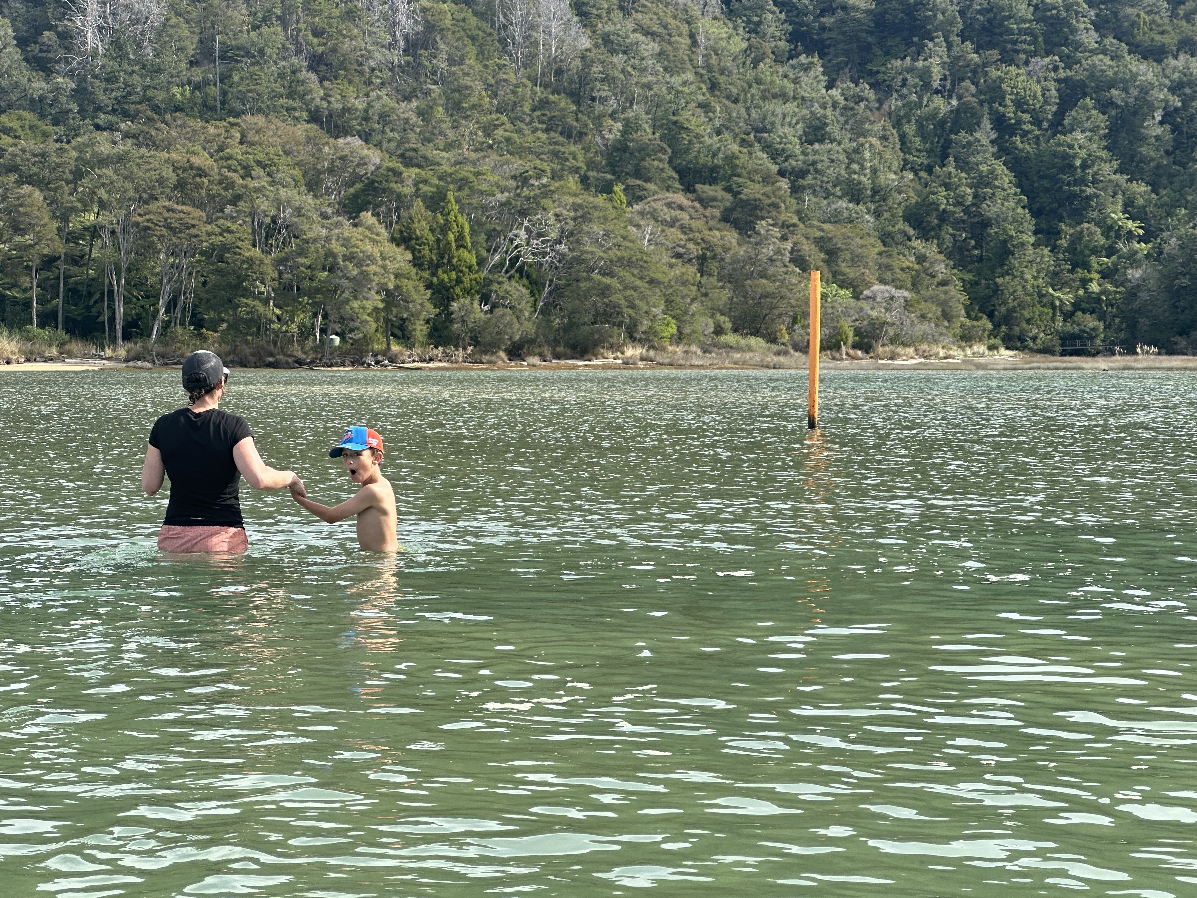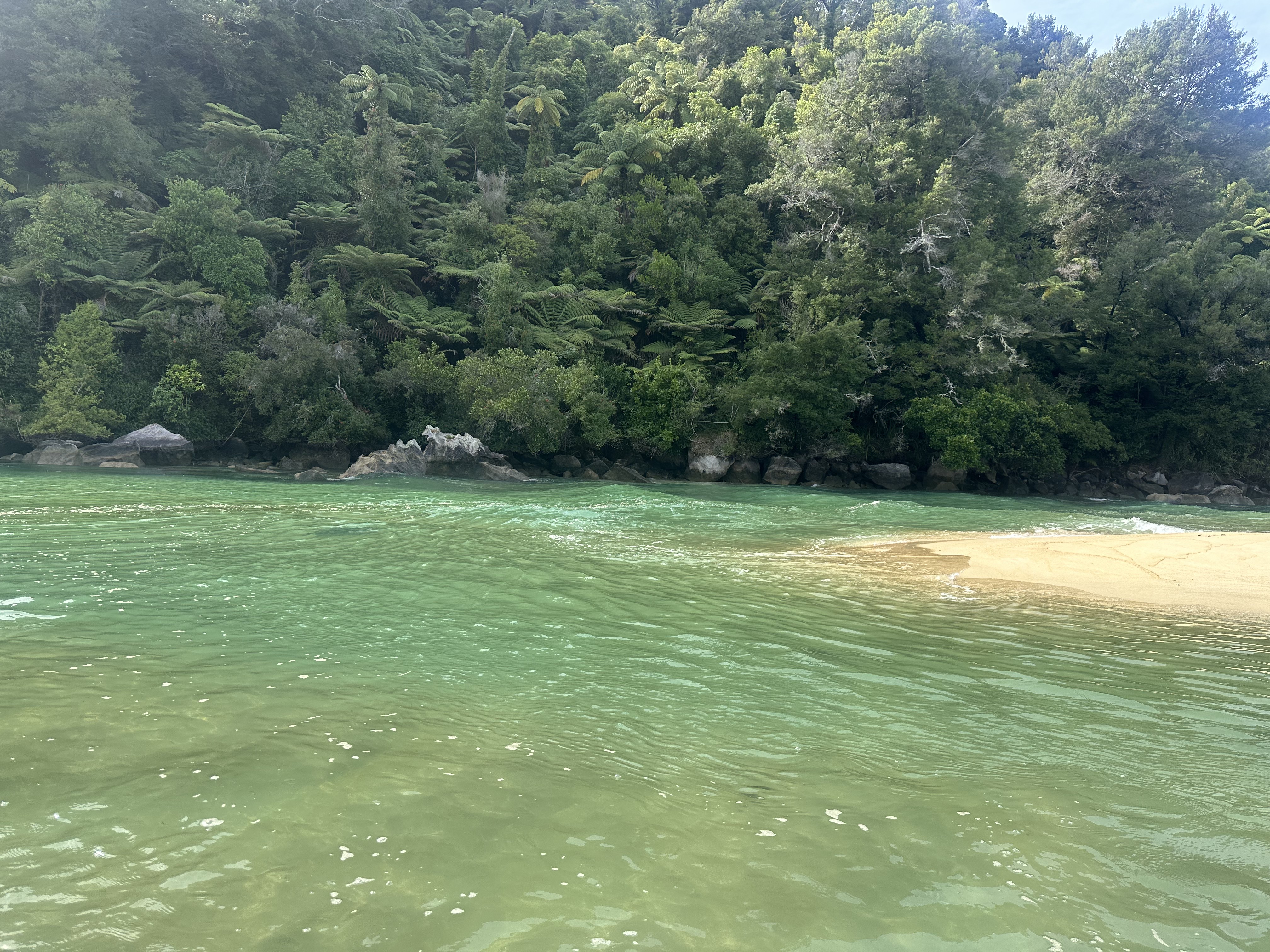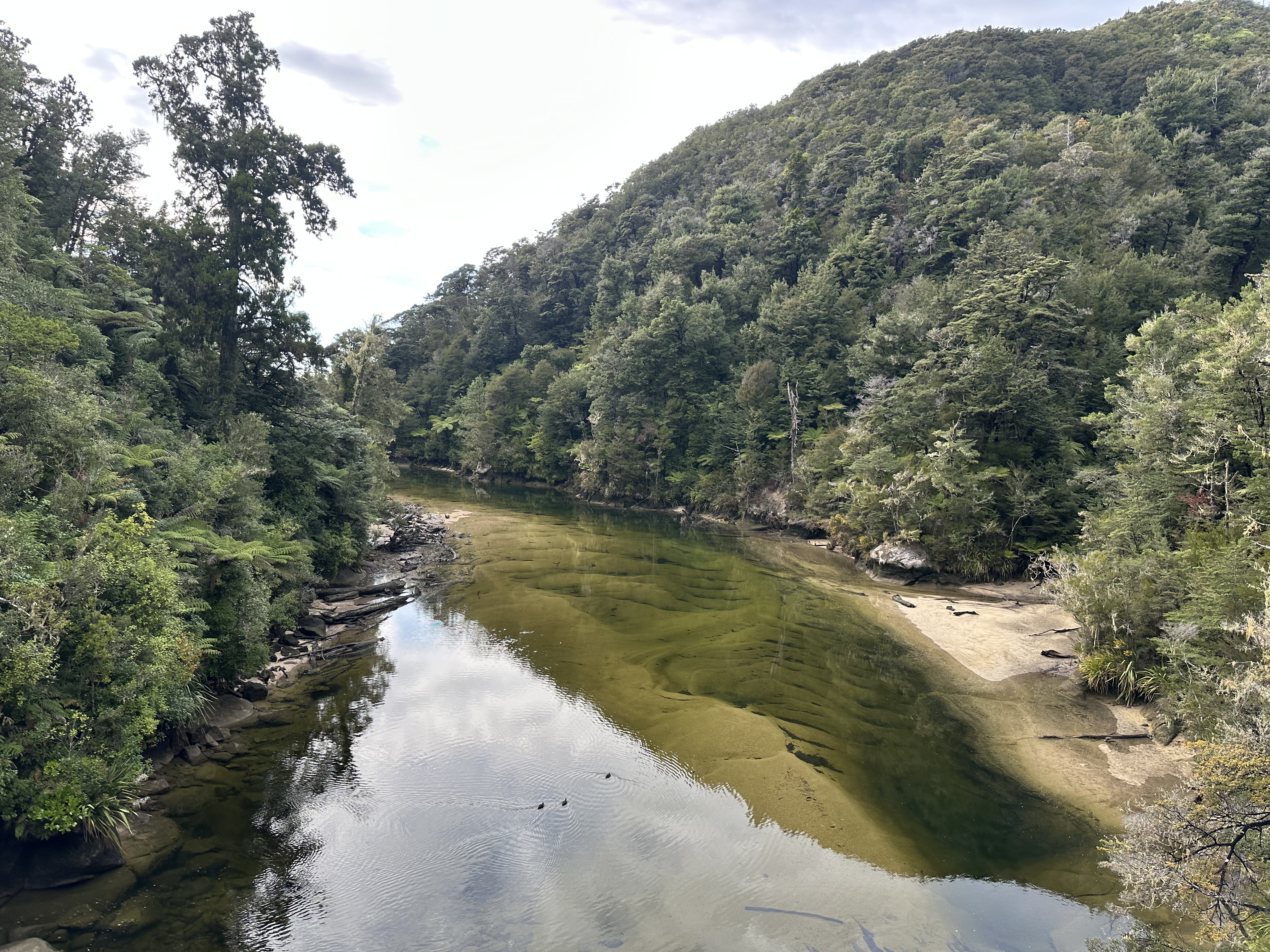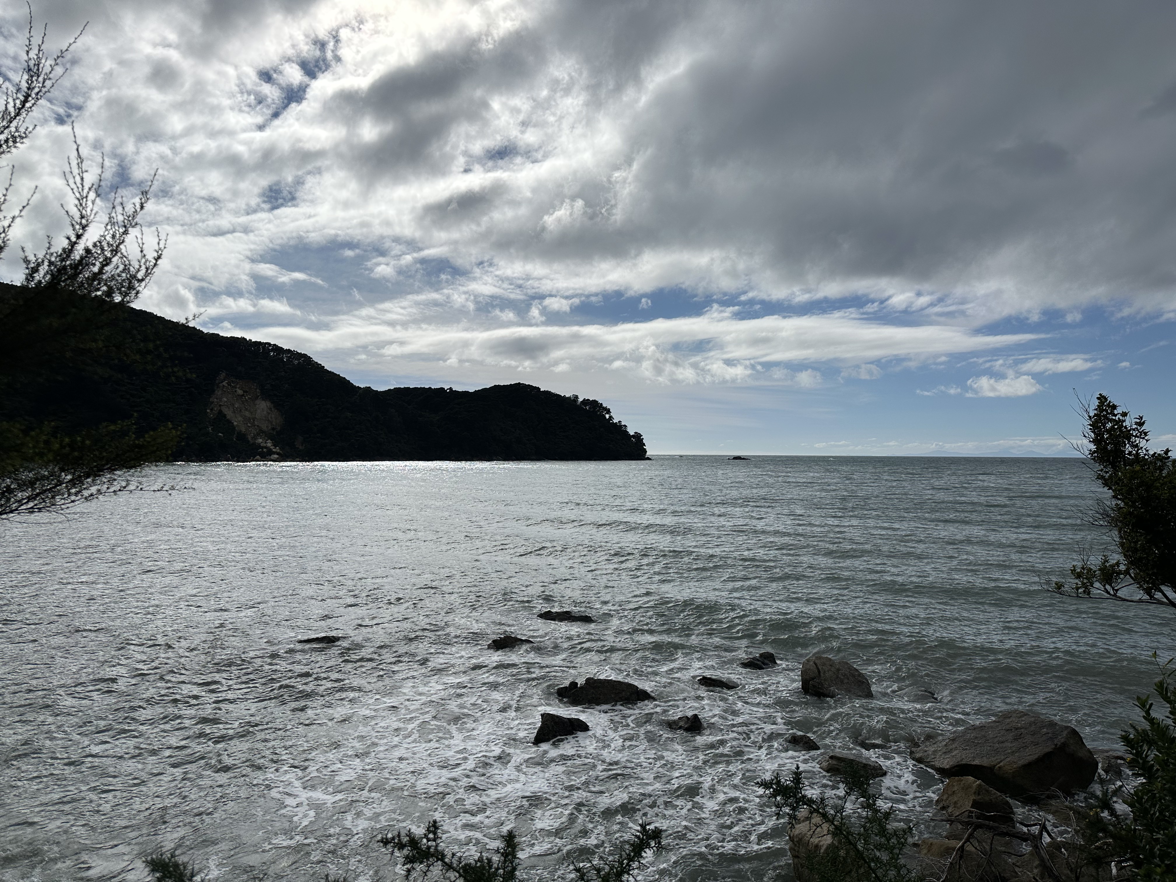 We had an early start in the dark to make our tidal crossing at low tide. Ate breakfast and tea by headlamp and then made our way to the DOC sign to drop our packs for the days Sea Shuttle. Then went to a tidal crossing as the sun came up. Oscar thought it was a bit stinky.